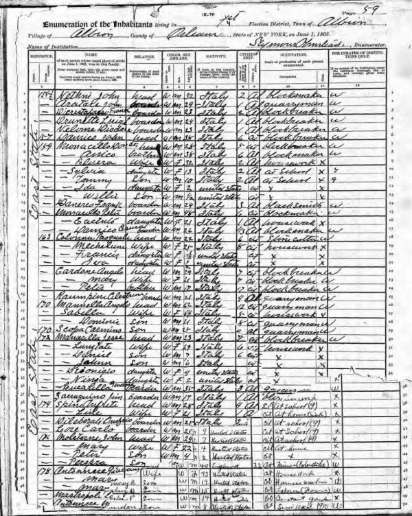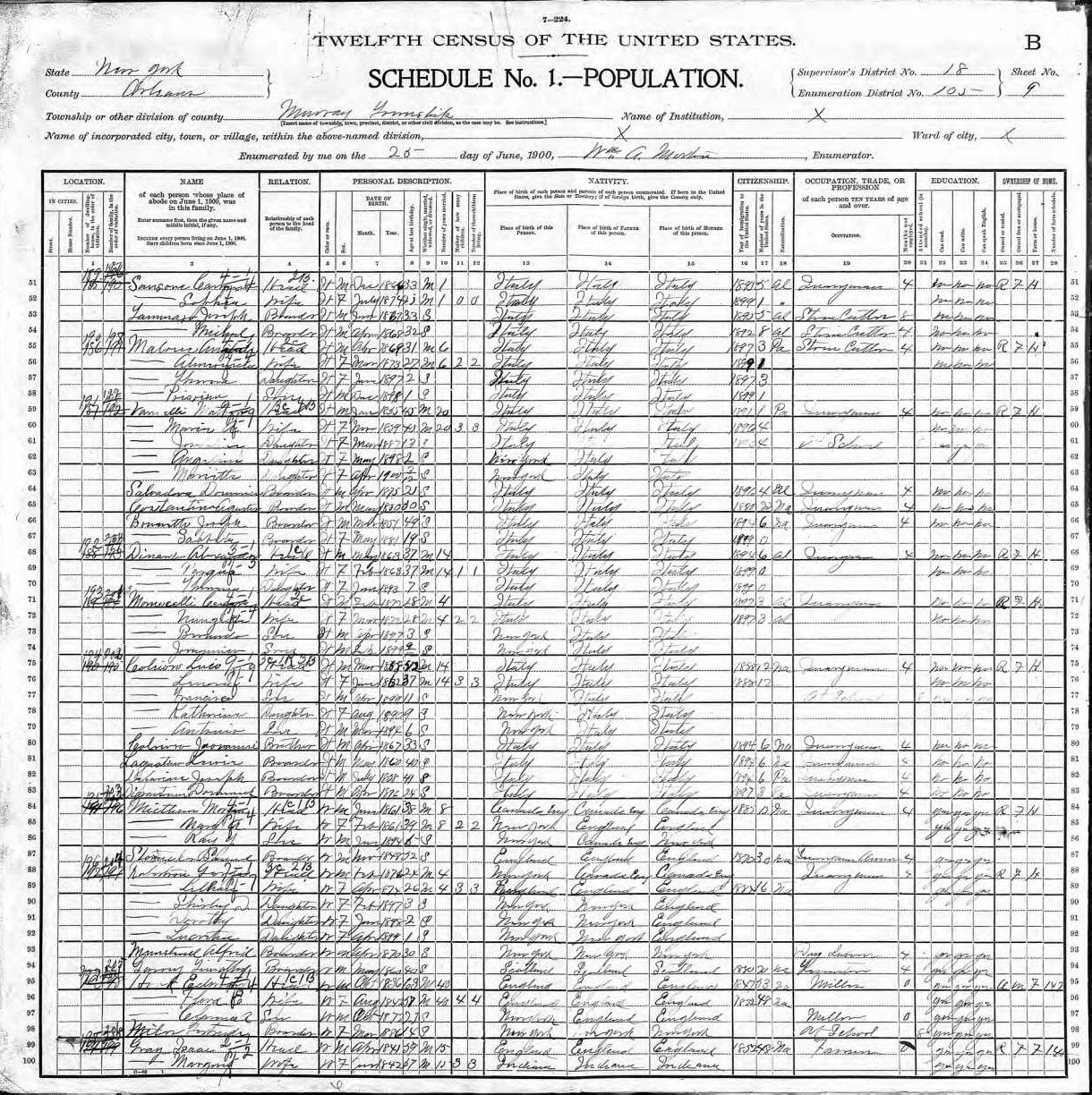 Monacelli Family 1900 Federal Census New York, Lines 71-74