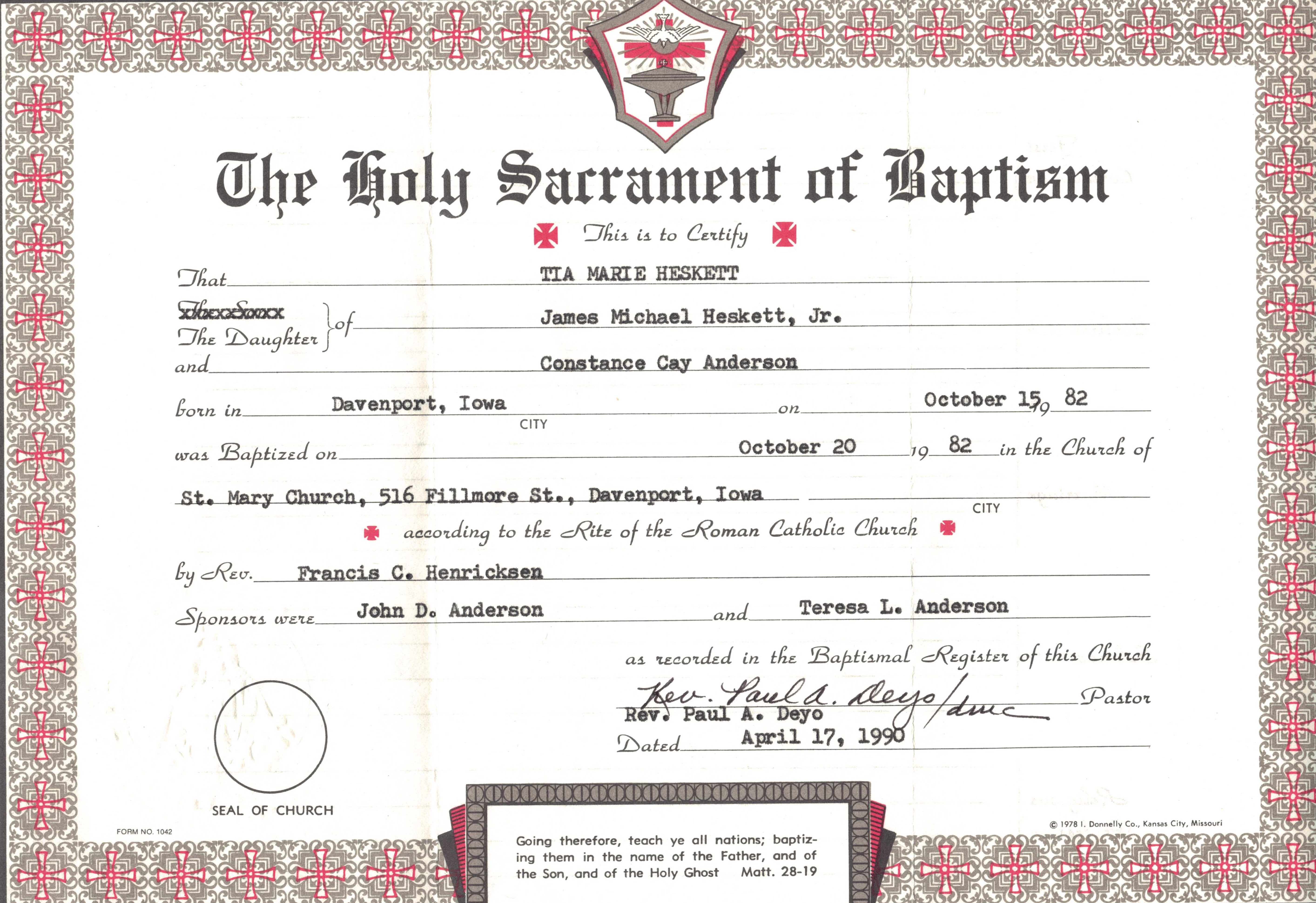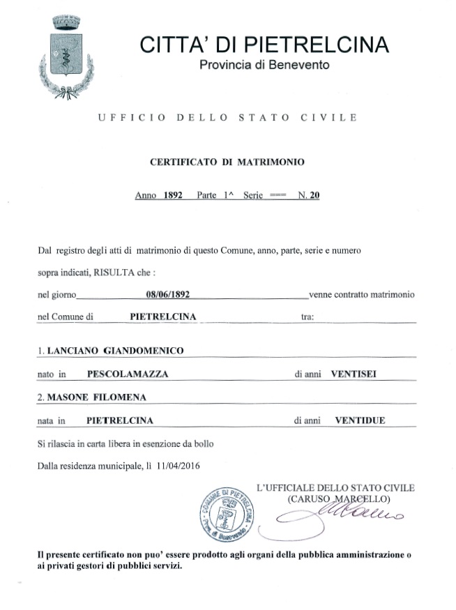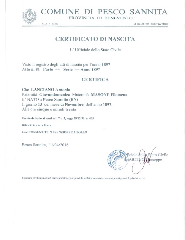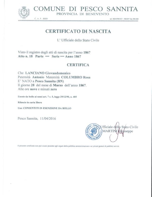 Dominic Langiano Knights of Columbus Certificate
