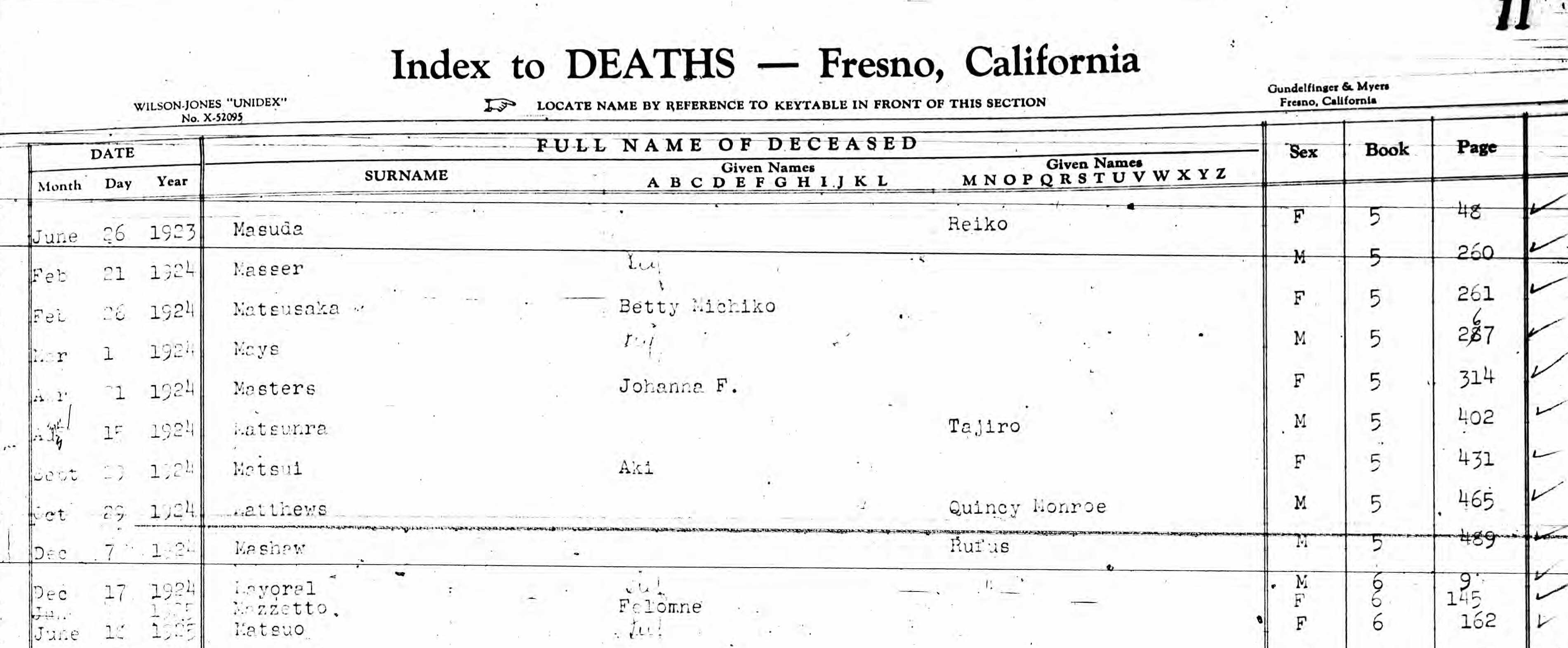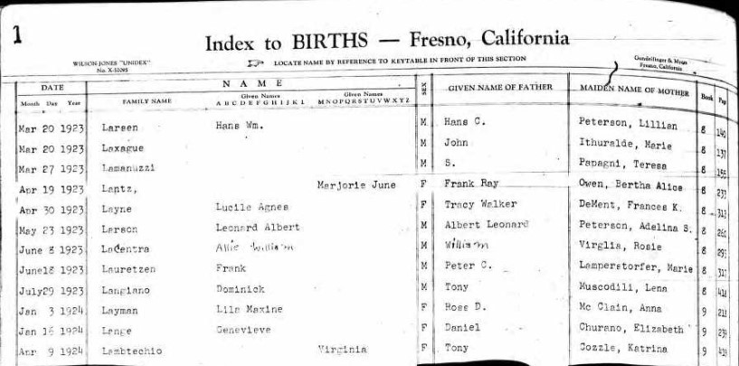 1923 Fresno, CA Birth Index