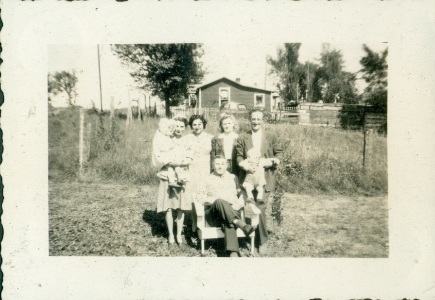 Unknown Cop, Oma Perry, Vicky Langiano standing in font, Etta Baker, Gladys Perry, Vic and Dominic Langiano