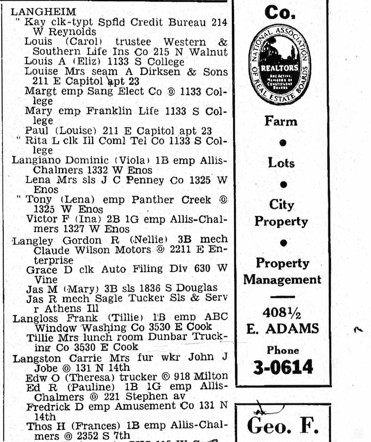 1950 Springfield, IL City Directory