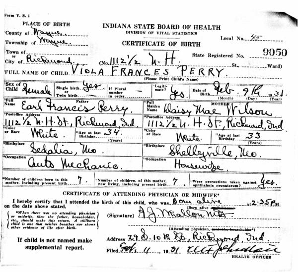 1923 Birth Record Page 2