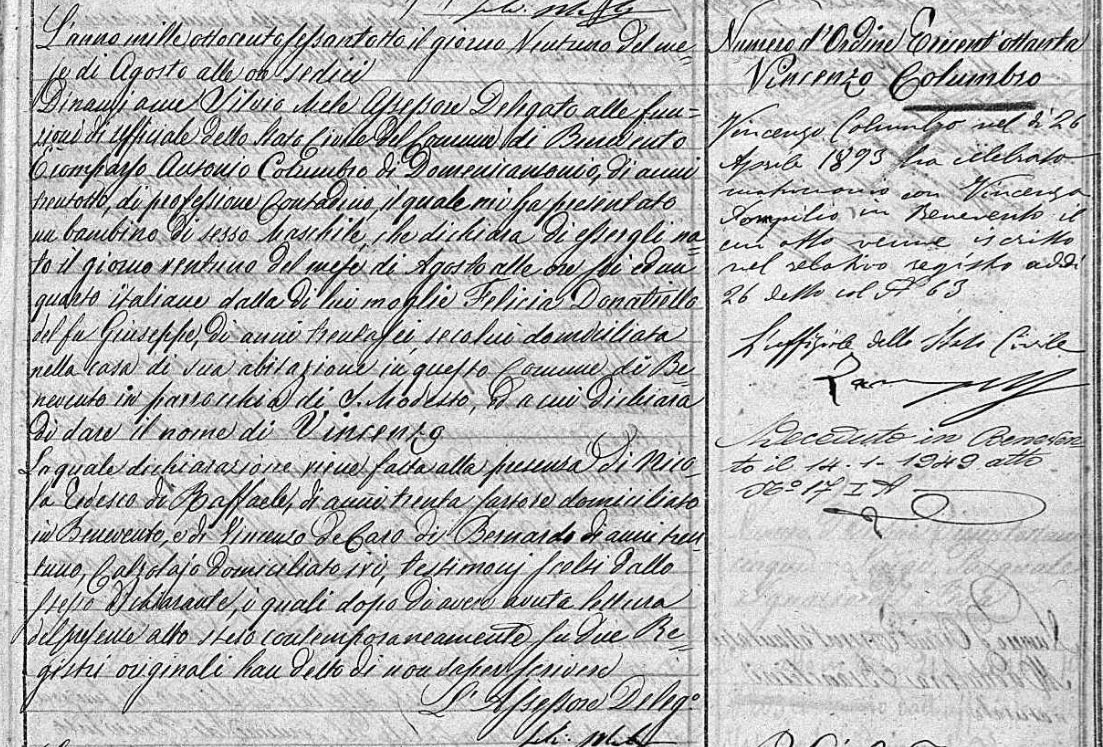 | Daughter | Concetta Felicia Maria Grazia Columbro Born: December 6, 1868, Died: March 23, 1869 |