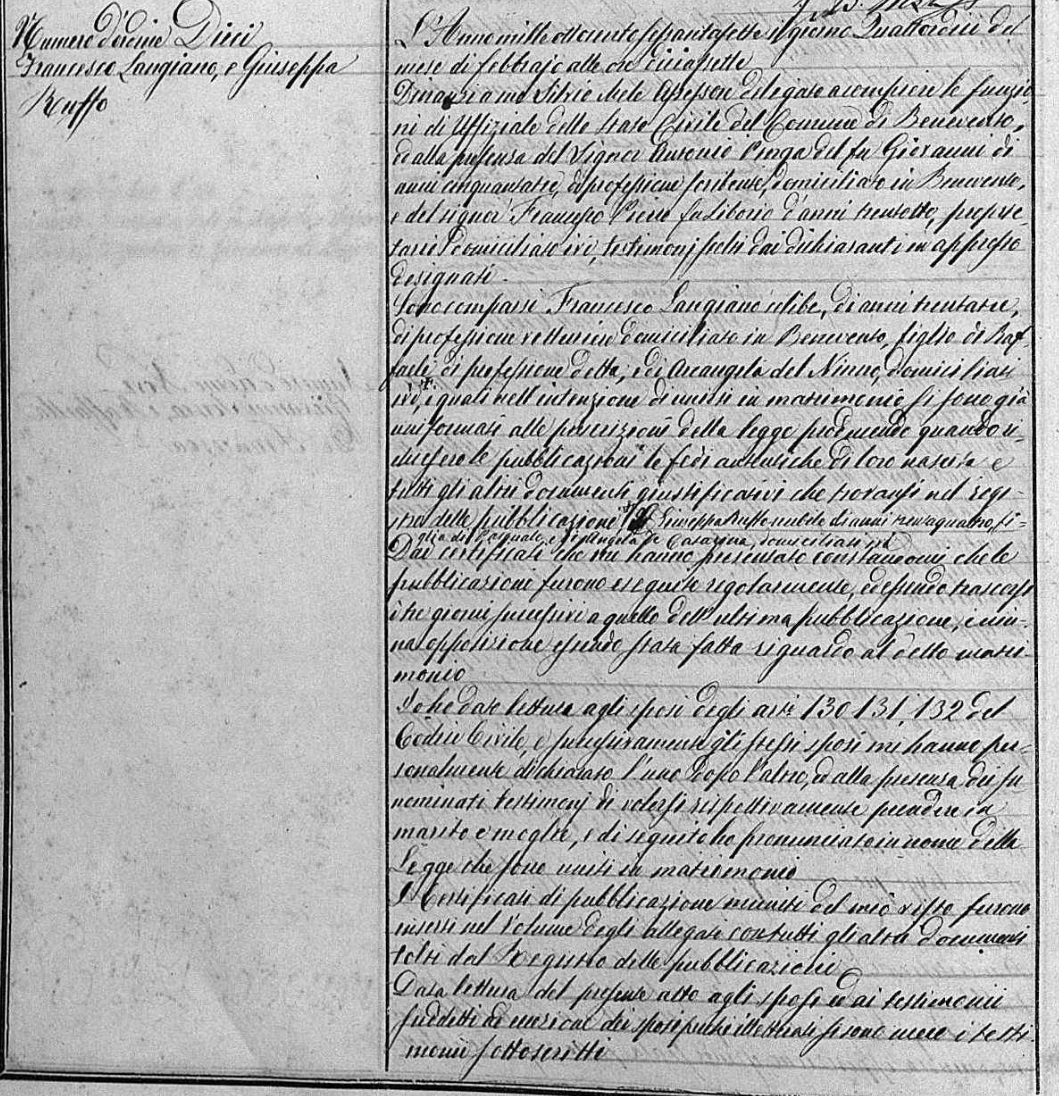 Giuseppa Russo were married on February 14, 1867 in Benevento, Benevento, Campania, Italy. He died on March 11, 1872, at age 39, in Benevento, Benevento, Campania, Italy.