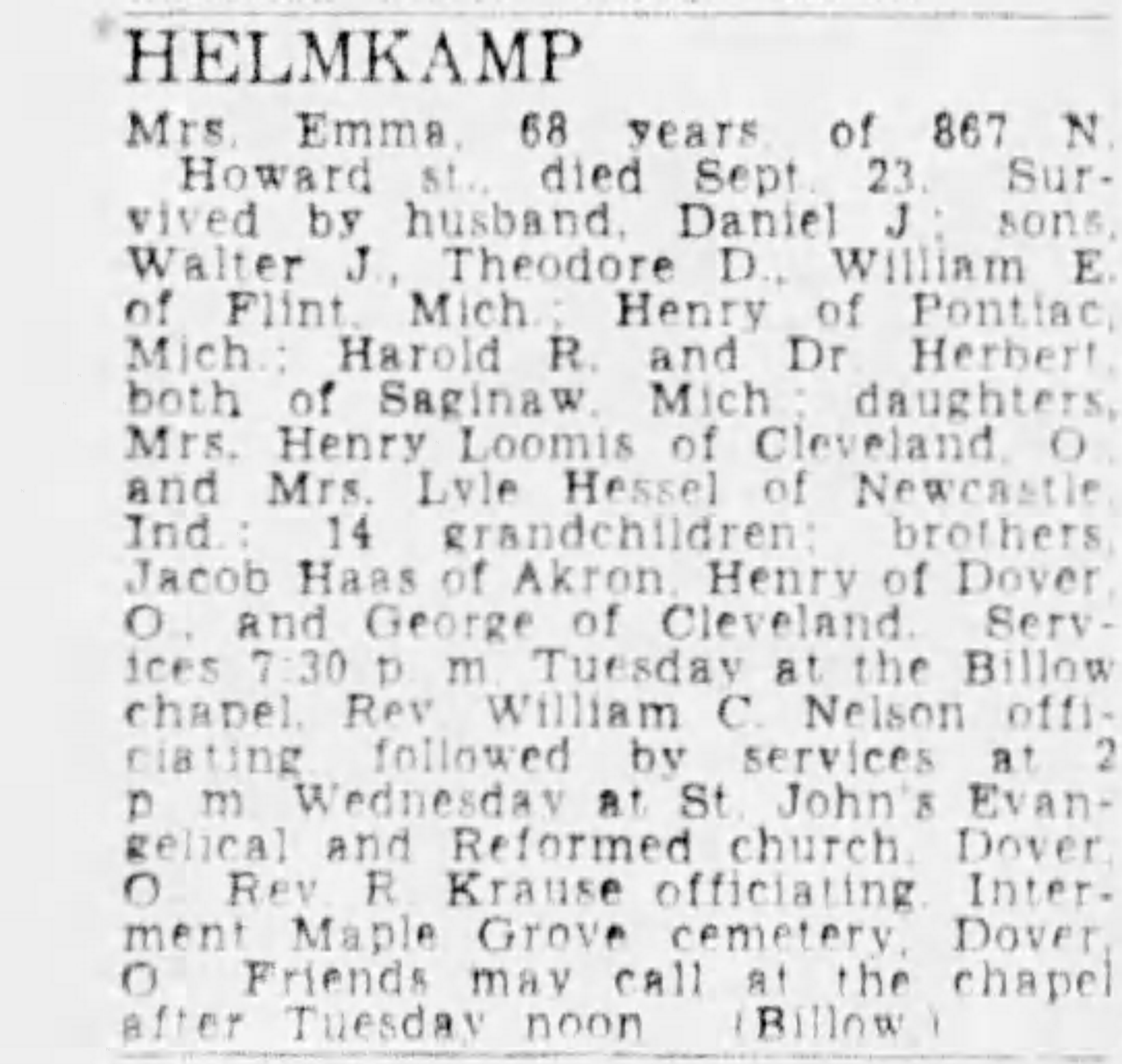 Walter John Helmkamp was born in September 1894 in Ohio, USA. He died in 1950, at age ~56.
