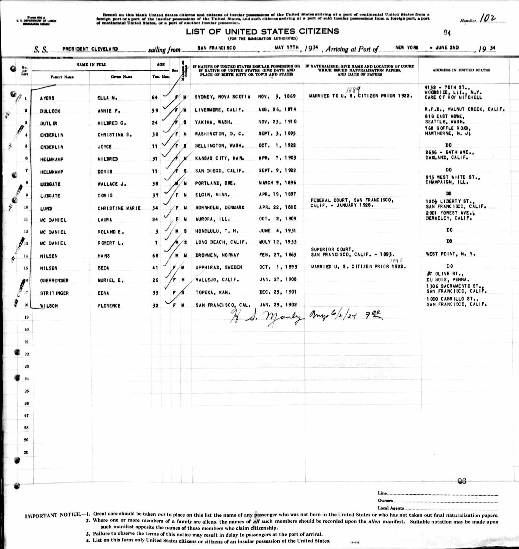 Helmkamp Family 1934 Ship Departure Manifest, Lines 6-7
