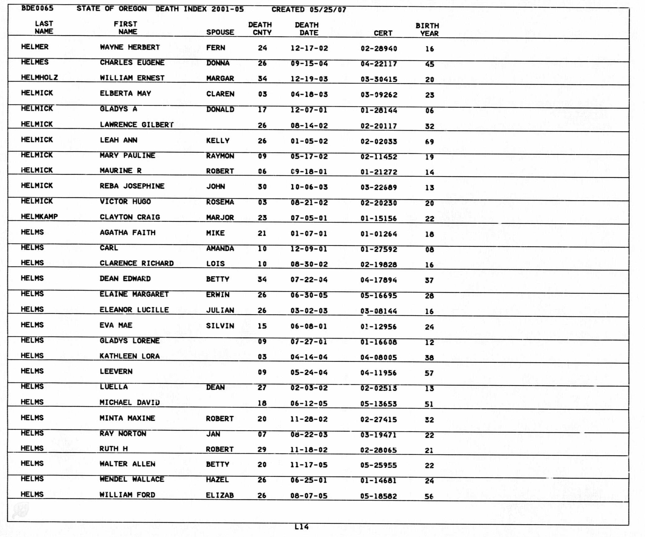 Jean Helmkamp was born in 1925 in New York, USA. She died.