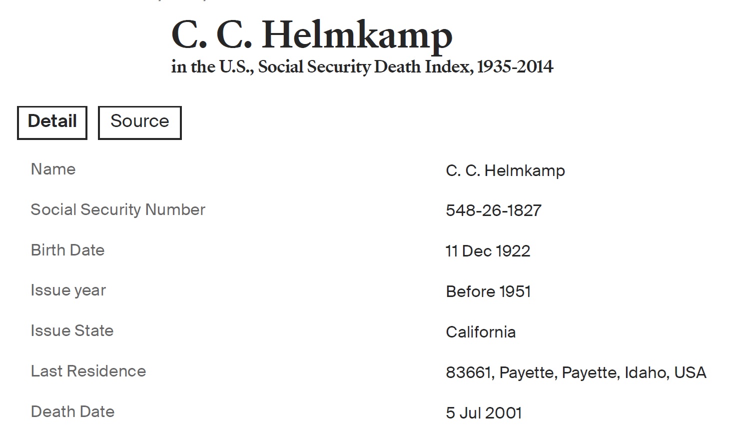Clayton Craig Helmkamp was born on December 11, 1922 in Los Angeles, California, USA. He and