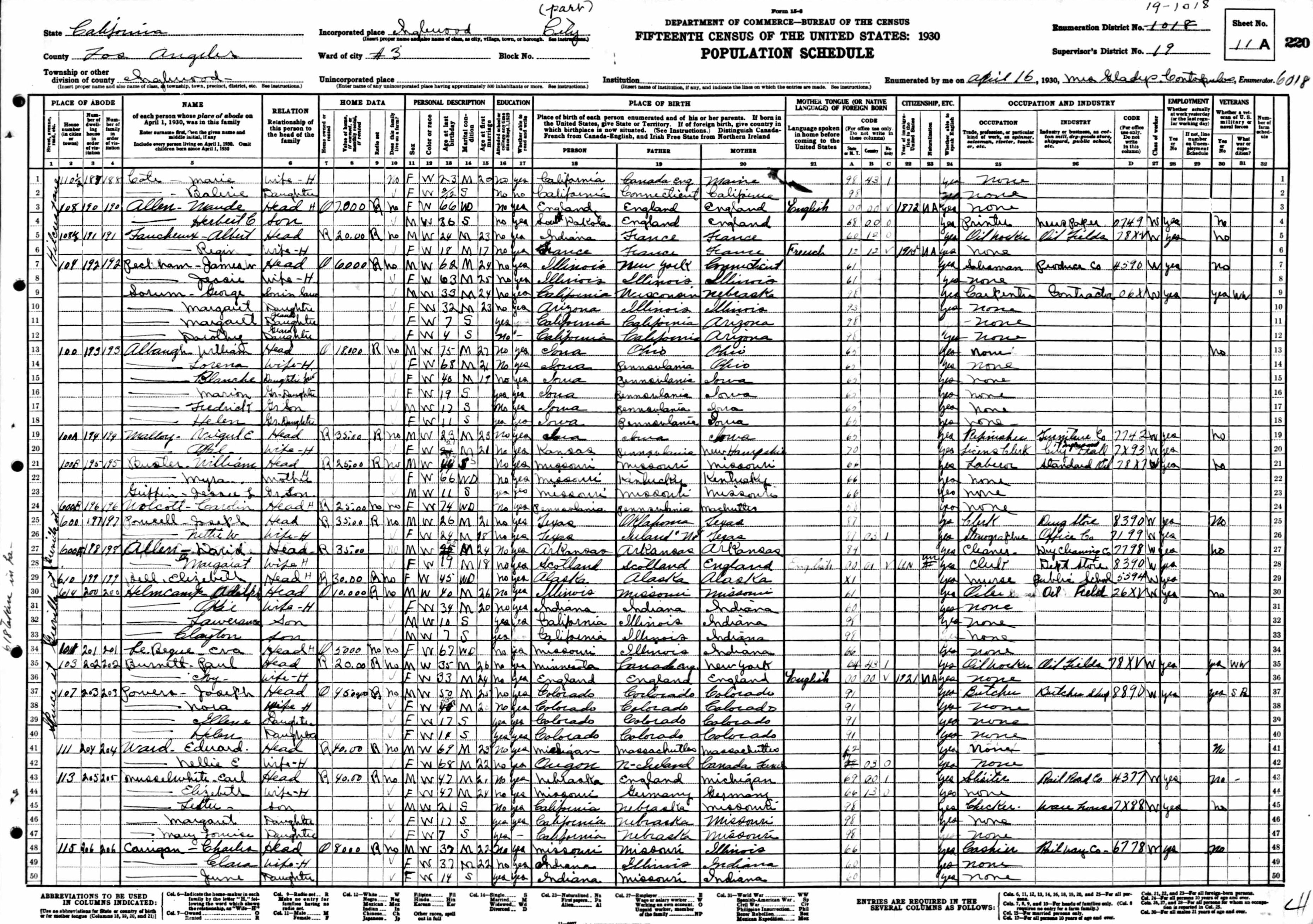 Helmkamp Family 1930 Federal Census California, Lines 30-33
