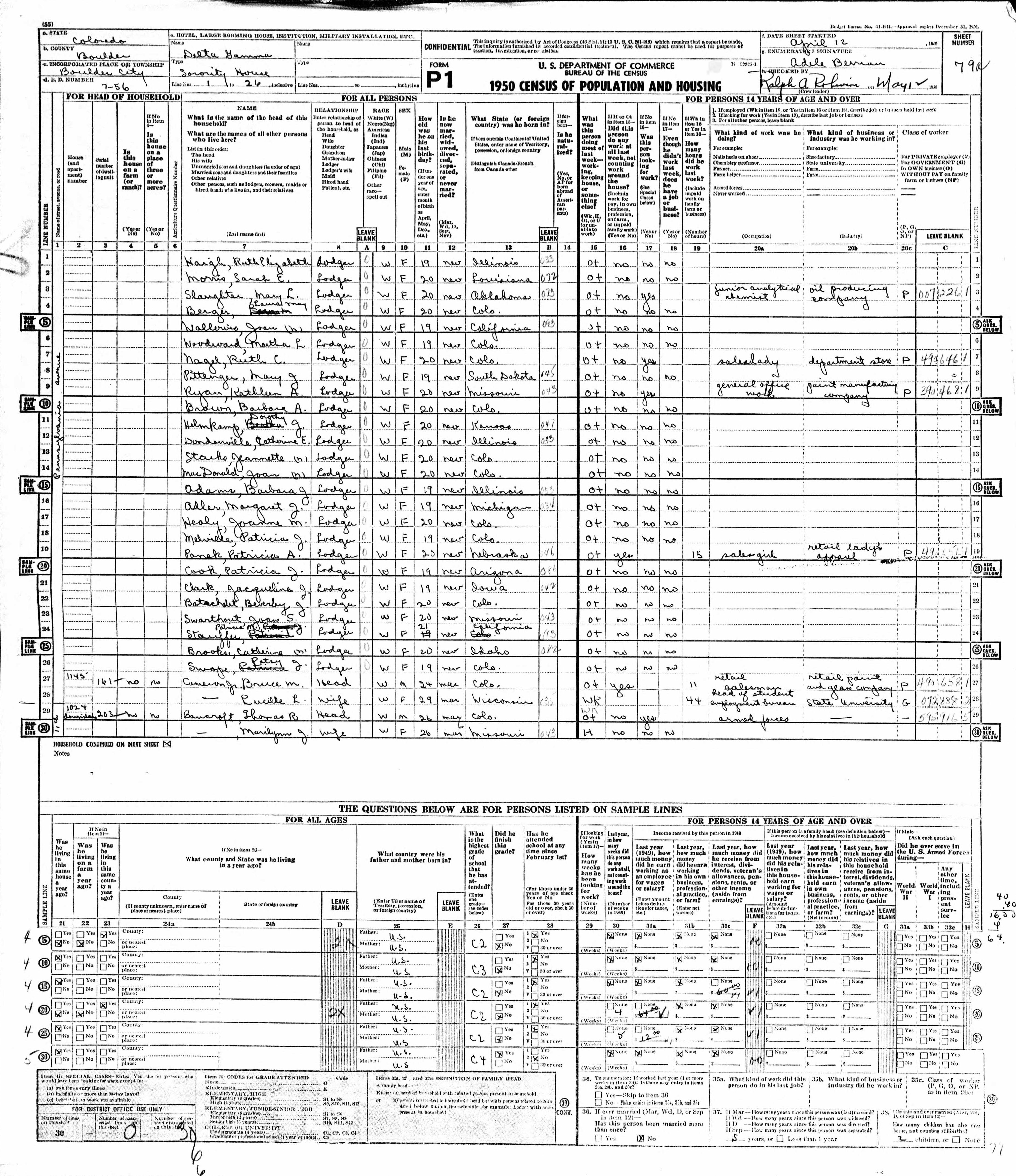 Dorothy Helmkamp 1950 Federal Census Colorado, Line 11
