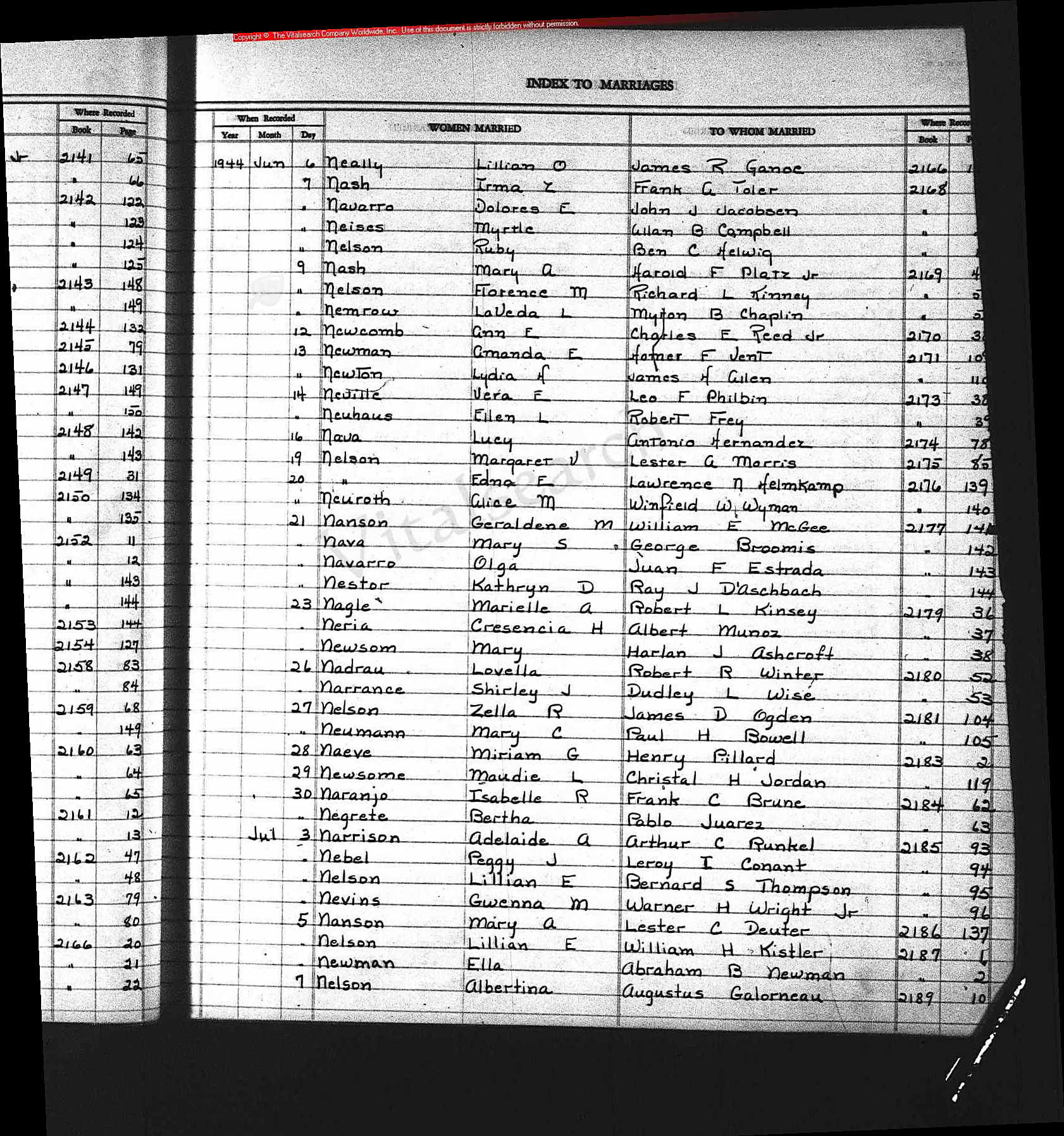 Edna Elnora Campbell were married on June 20, 1944 in California, USA. He and