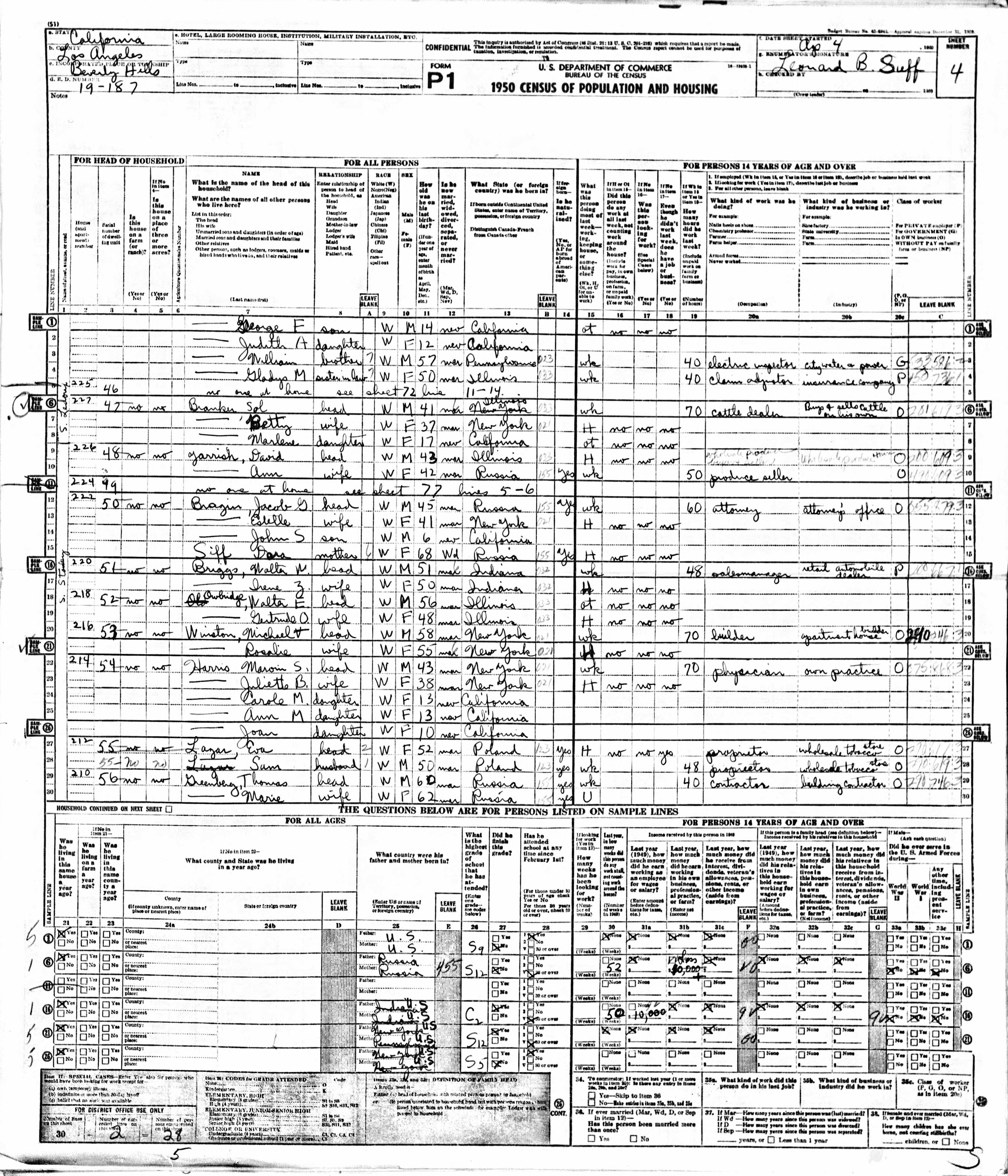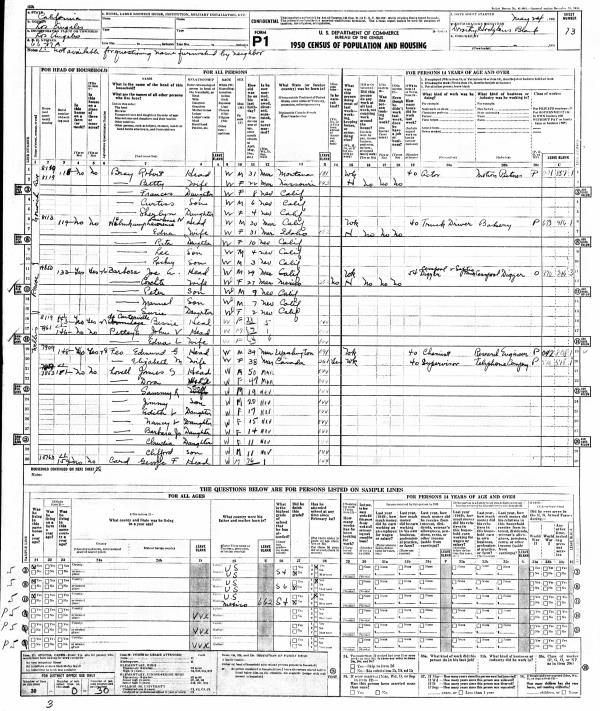 Helmkamp Family 1950 Federal Census California, Lines 6-10