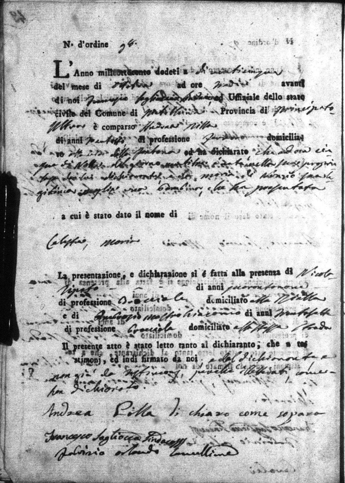 Family: Andrea Pilla Born: 1769, Died: December 7, 1839