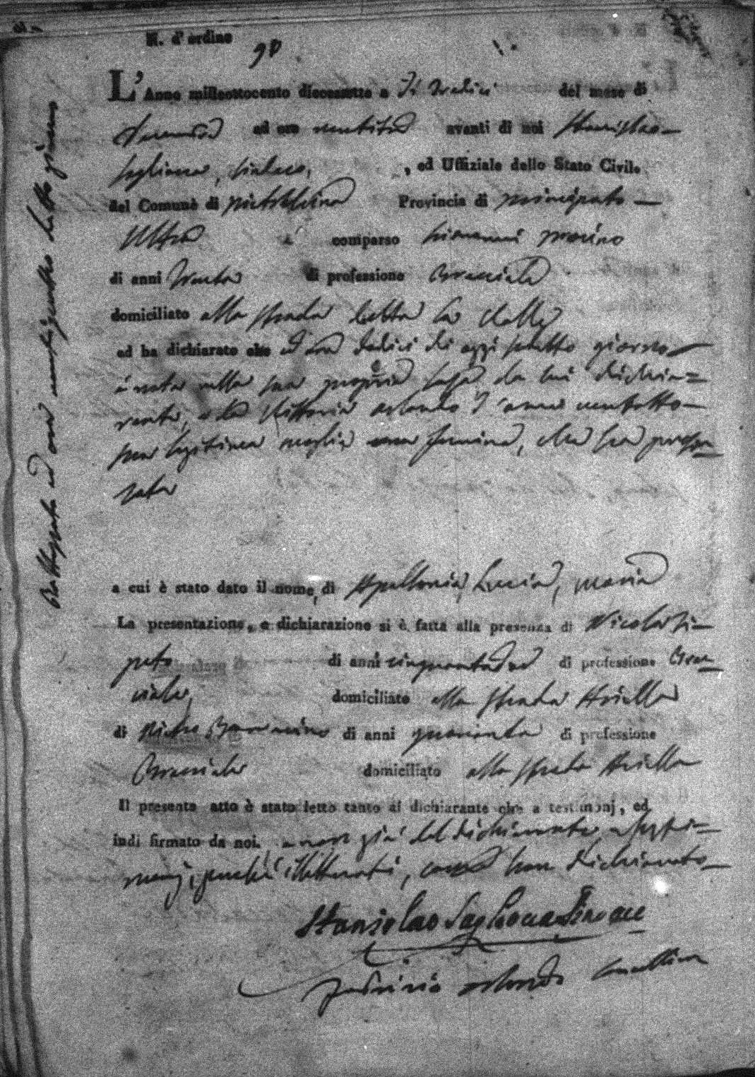 Apollonia Lucia Maria Procino were married on February 10, 1839 in Pietrelcina, Benevento, Campania, Italy. He died.