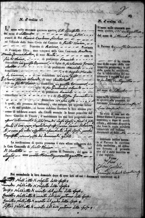 Tomasina Maria Saginario were married on June 28, 1843 in Pietrelcina, Benevento, Campania, Italy. He died.