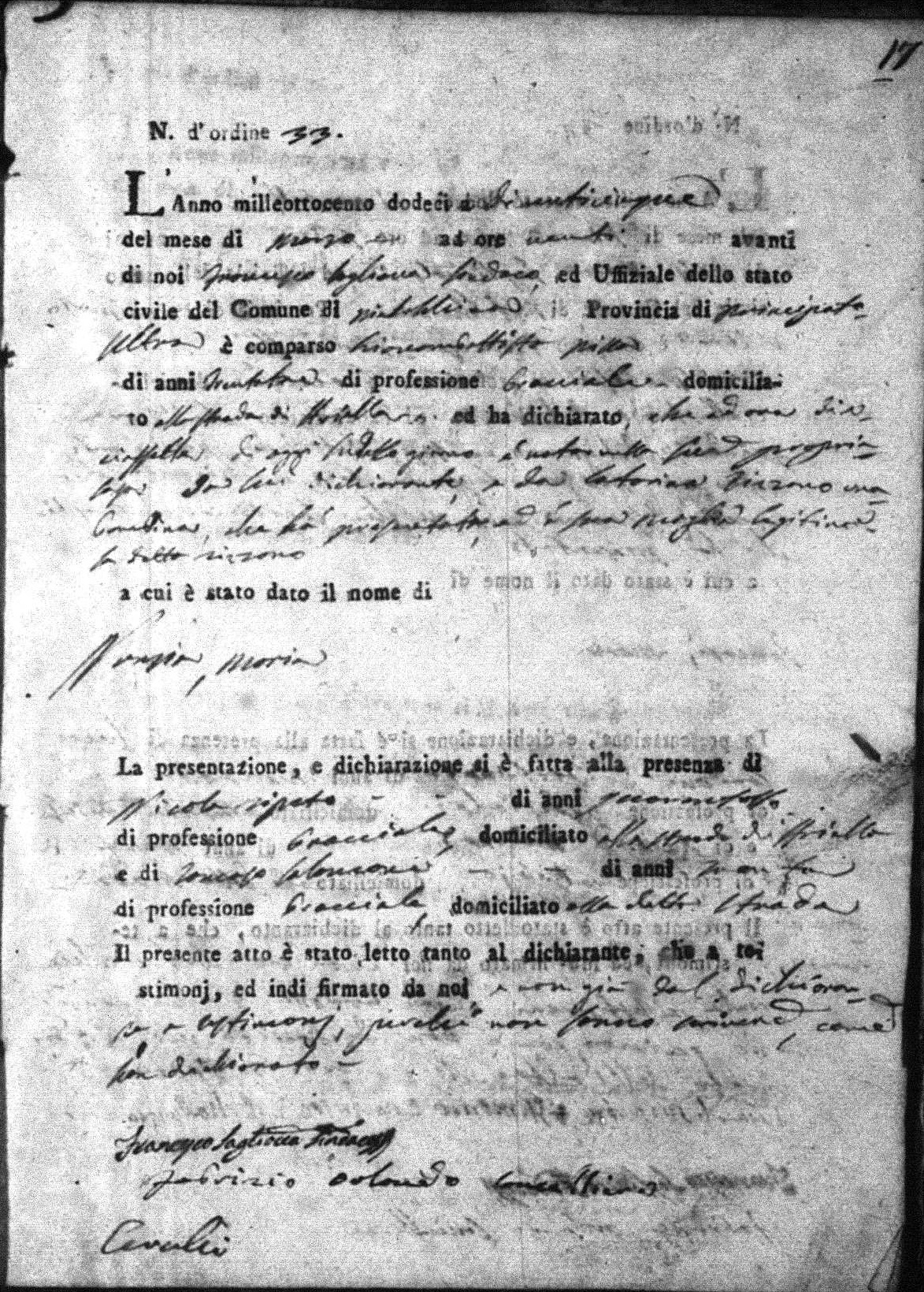 1812 Birth Record