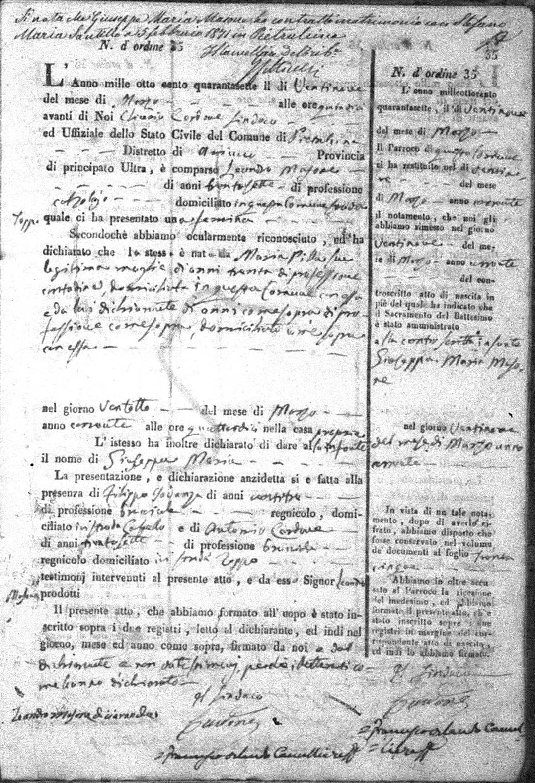 Maria Cardone were married on September 23, 1840 in Pietrelcina, Benevento, Campania, Italy. He died.