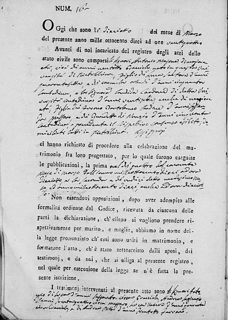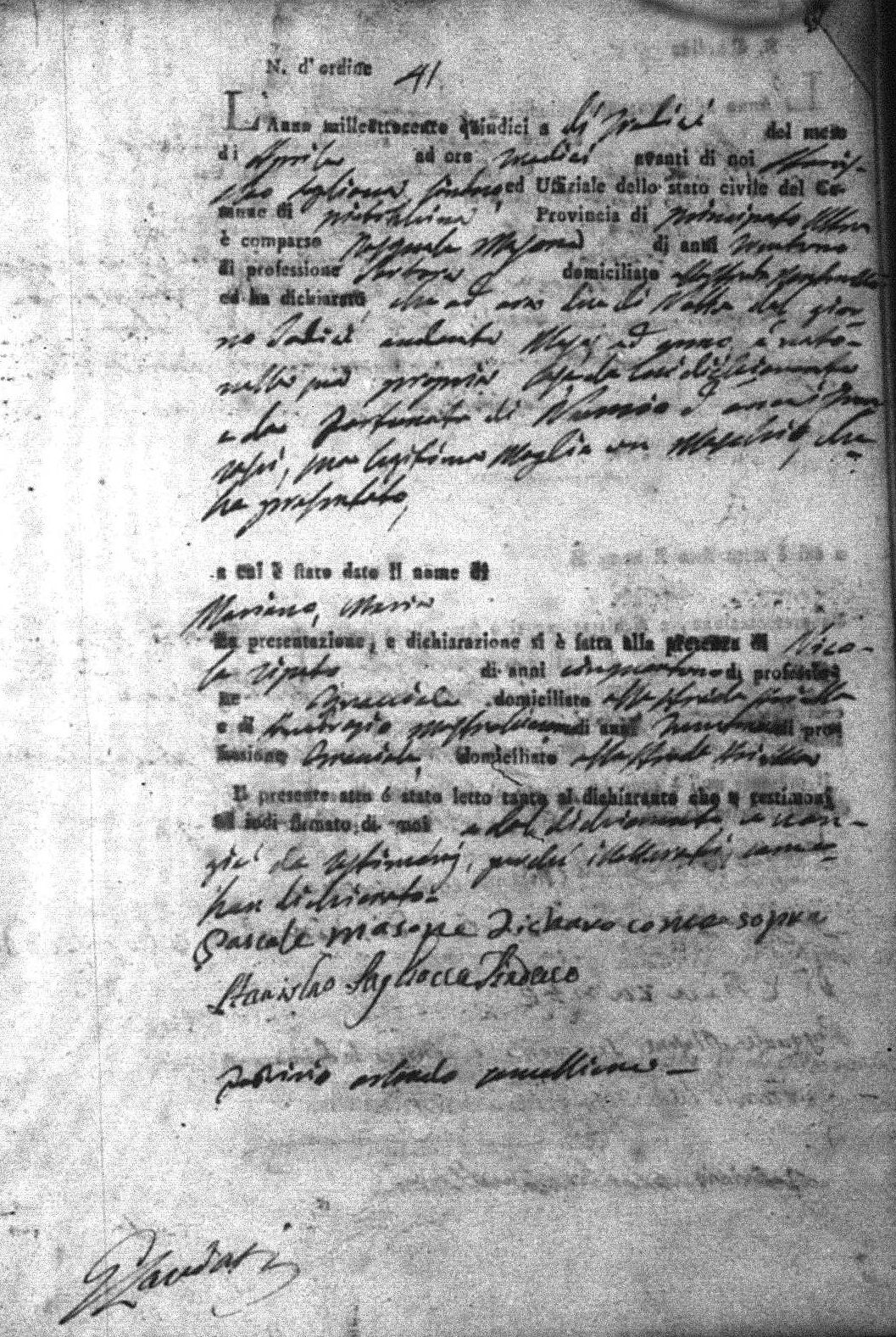 Nicola Maria Vecchiarino were married on May 28, 1841 in Pietrelcina, Benevento, Campania, Italy. She and