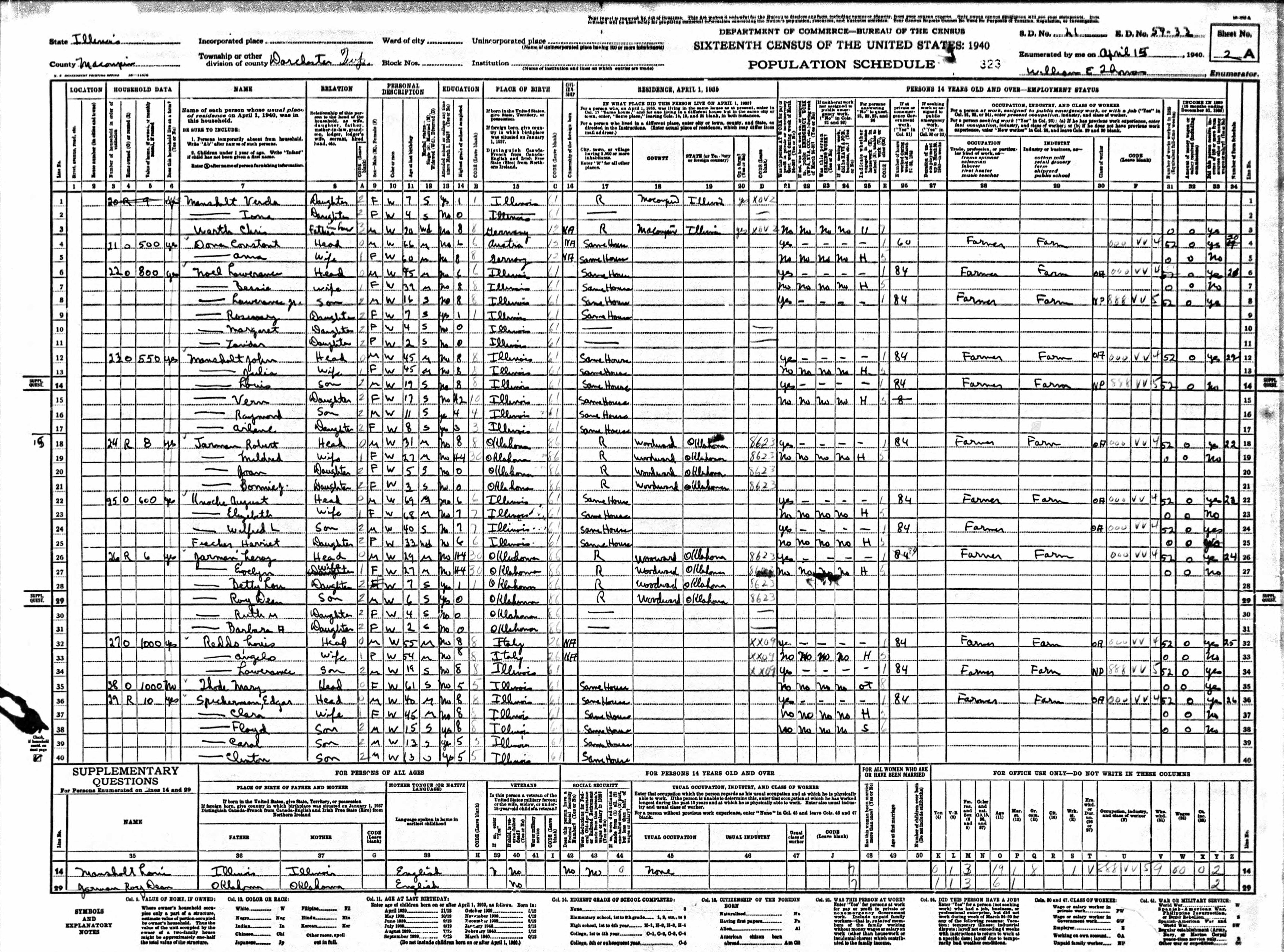 Mansholt Family 1940 Federal Census Illinois, Lines 1-3