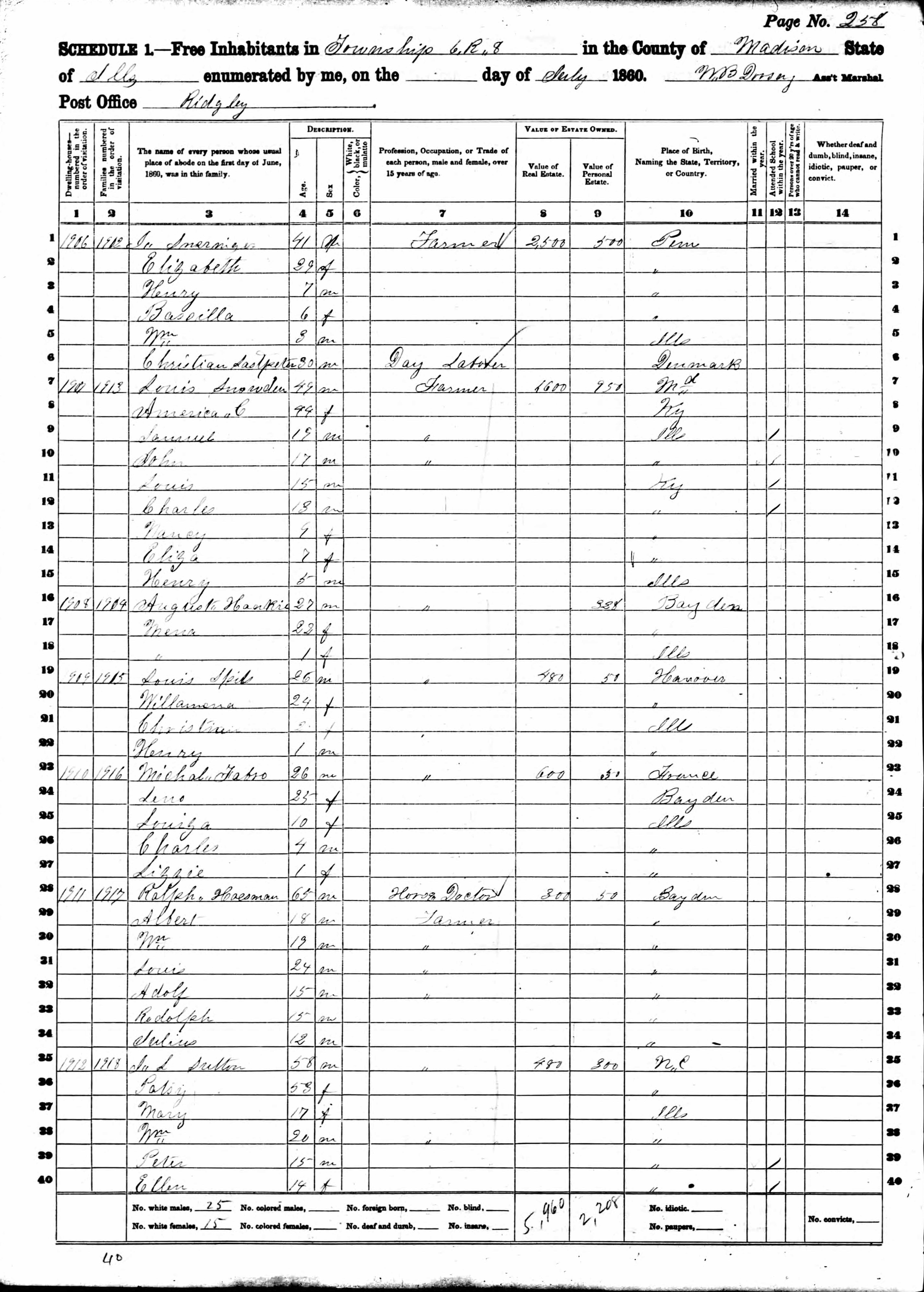 Ammon Family 1860 Federal Census Illinois, Lines 31-37