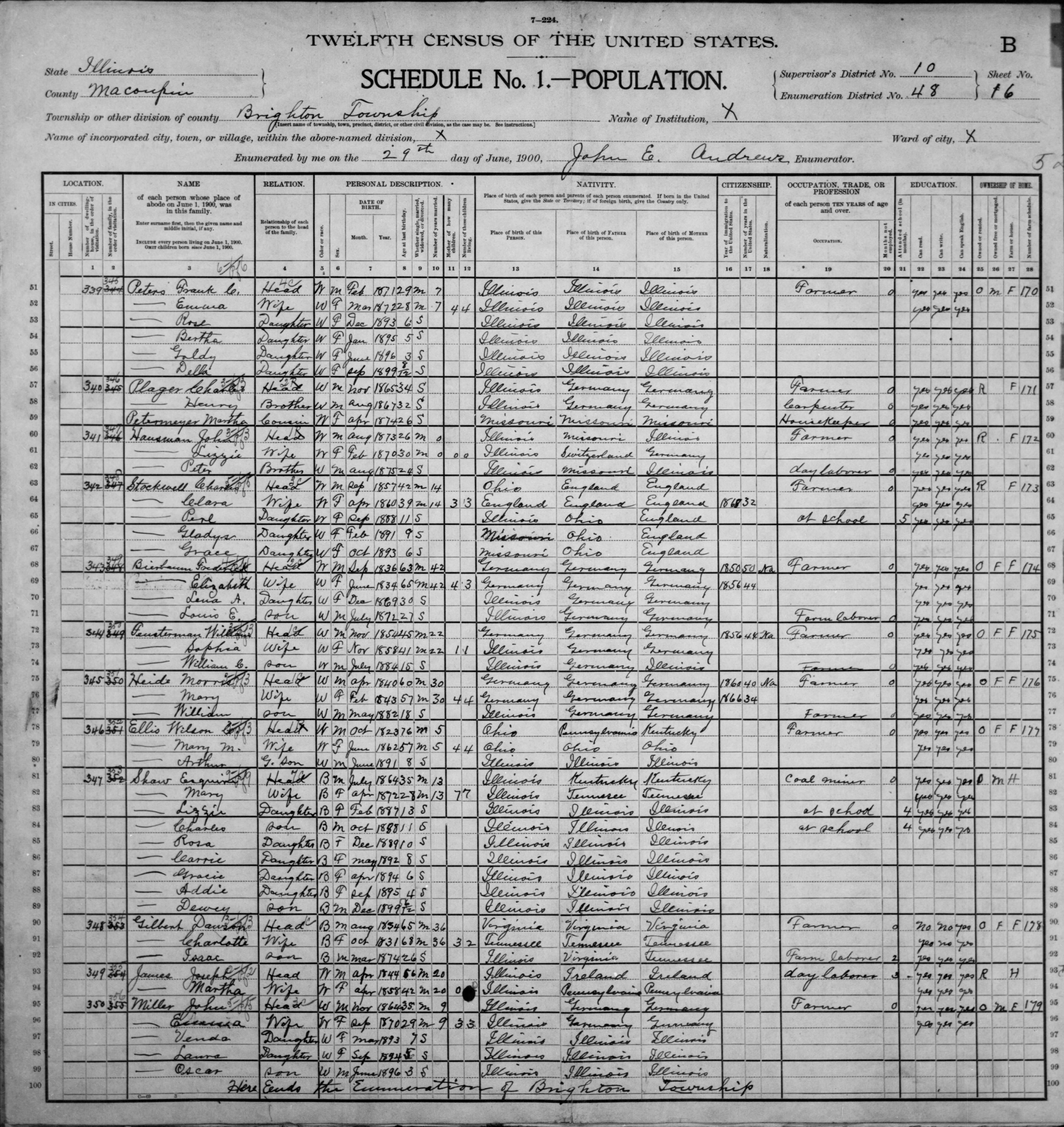 Hausman Family 1900 Federal Census Illinois, Lines 46-50