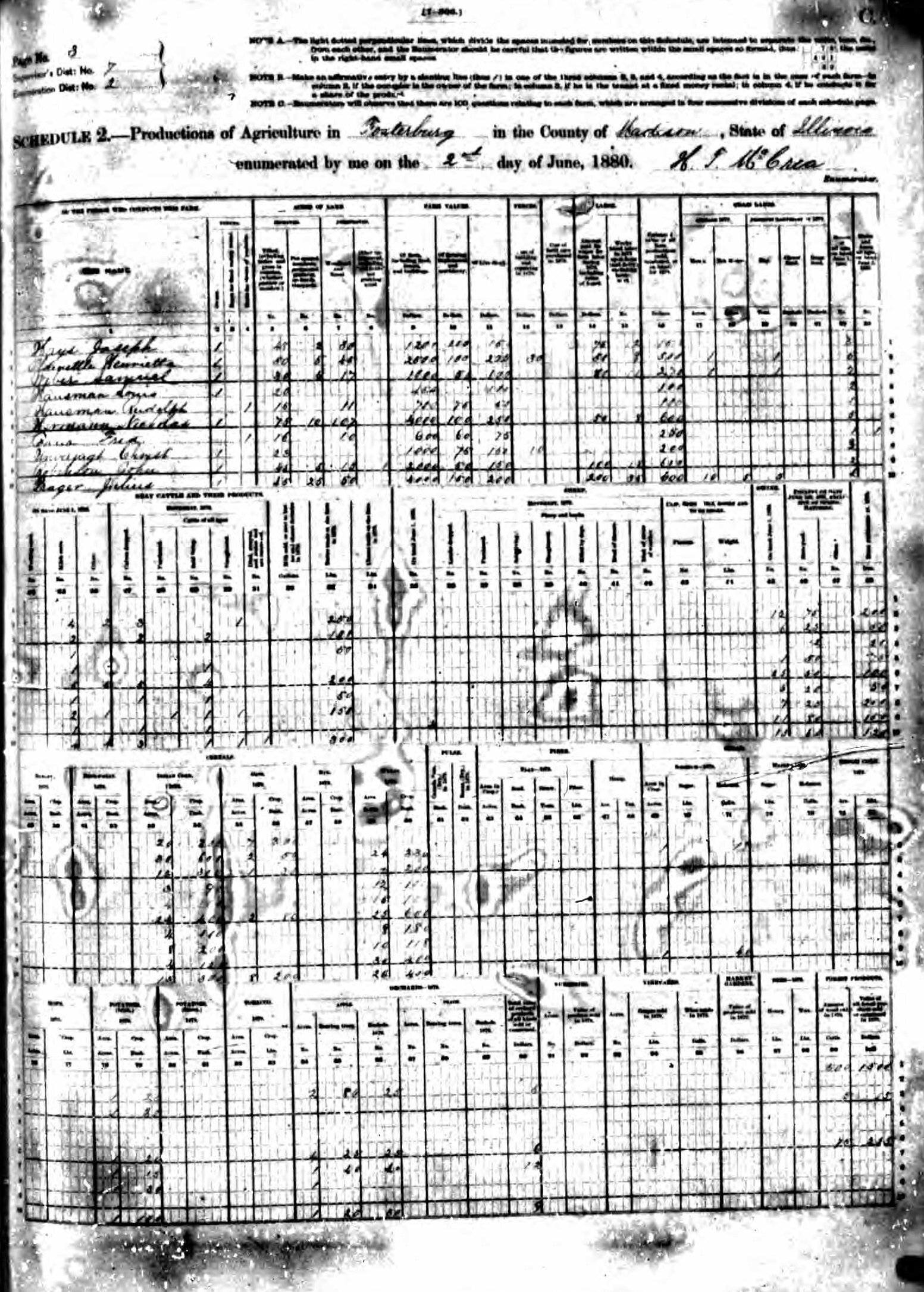 Hausman Family 1880 Federal Agriculture Census Illinois, Lines 4-5
