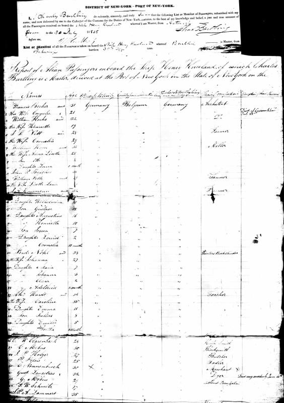 Hausman Family 1838 Ship Manifest, Lines 14-22