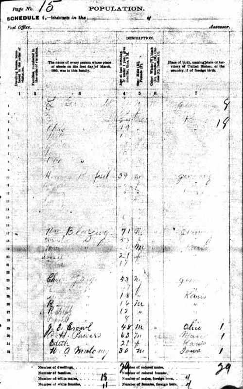 Blasing Family 1885 State Census Kansas, 9-14
