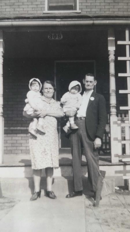 Katherine Fritz and Henry Hausman holding Betty and Bobby Hausman