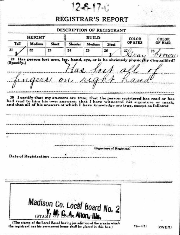 1917 World War I Registration Page 1