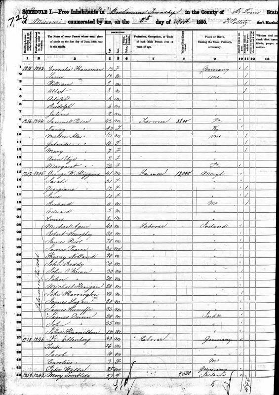 Hausman Family 1850 Federal Census Missouri Version 2, Lines 2-12
