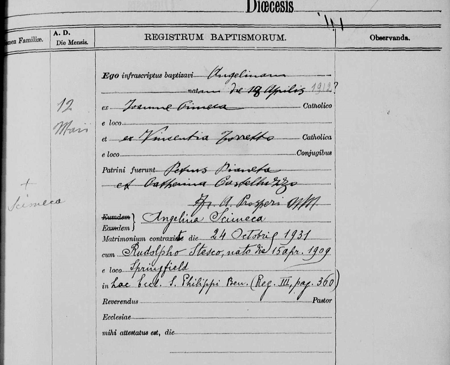 Angelina Scimeca were married on November 18, 1930 in Chicago, Cook, Illinois, USA. He died on September 5, 1978, at age 67, in Benton Harbor, Berrien, Michigan, USA. He was buried in North Shore Memory Gardens, Coloma, Michigan.