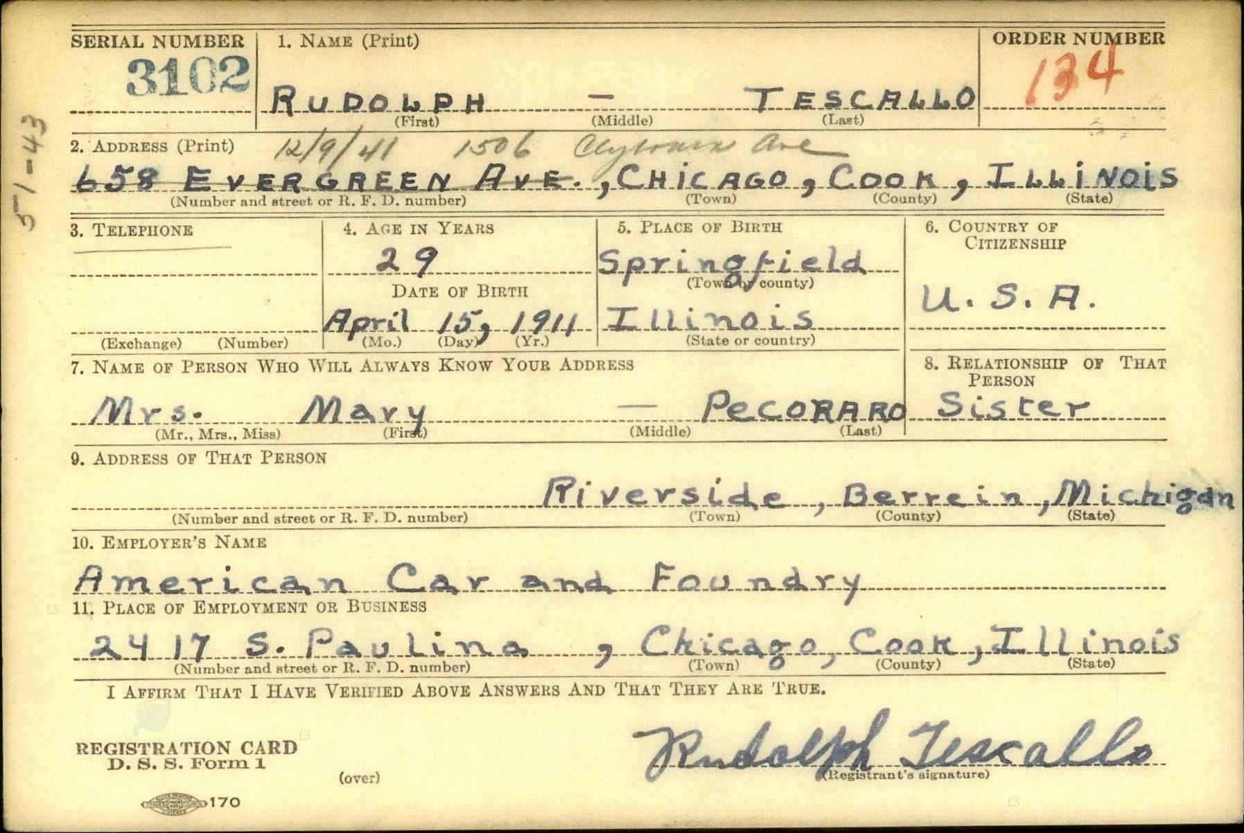 Adolph "Rudolph" Steskal "Tescallo", Sr., was born on April 15, 1911 in Springfield, Sangamon, Illinois, USA. He and