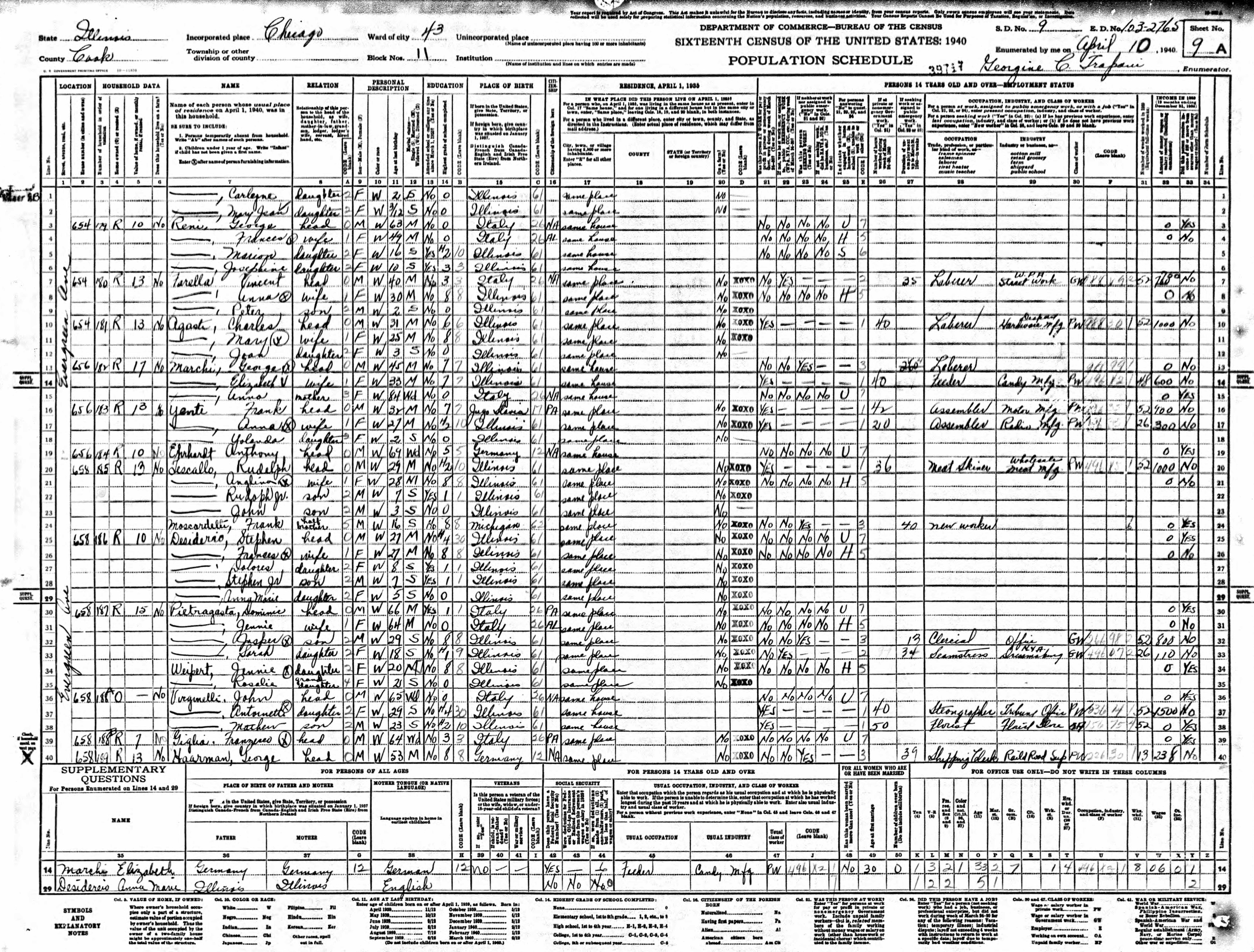 Tescallo Family 1940 Federal Census Illinois, Lines 20-24