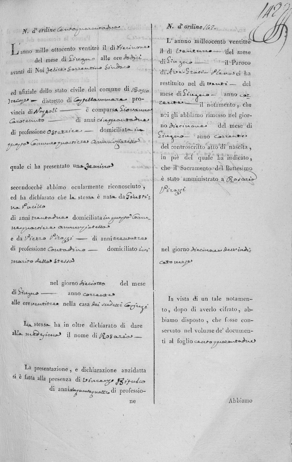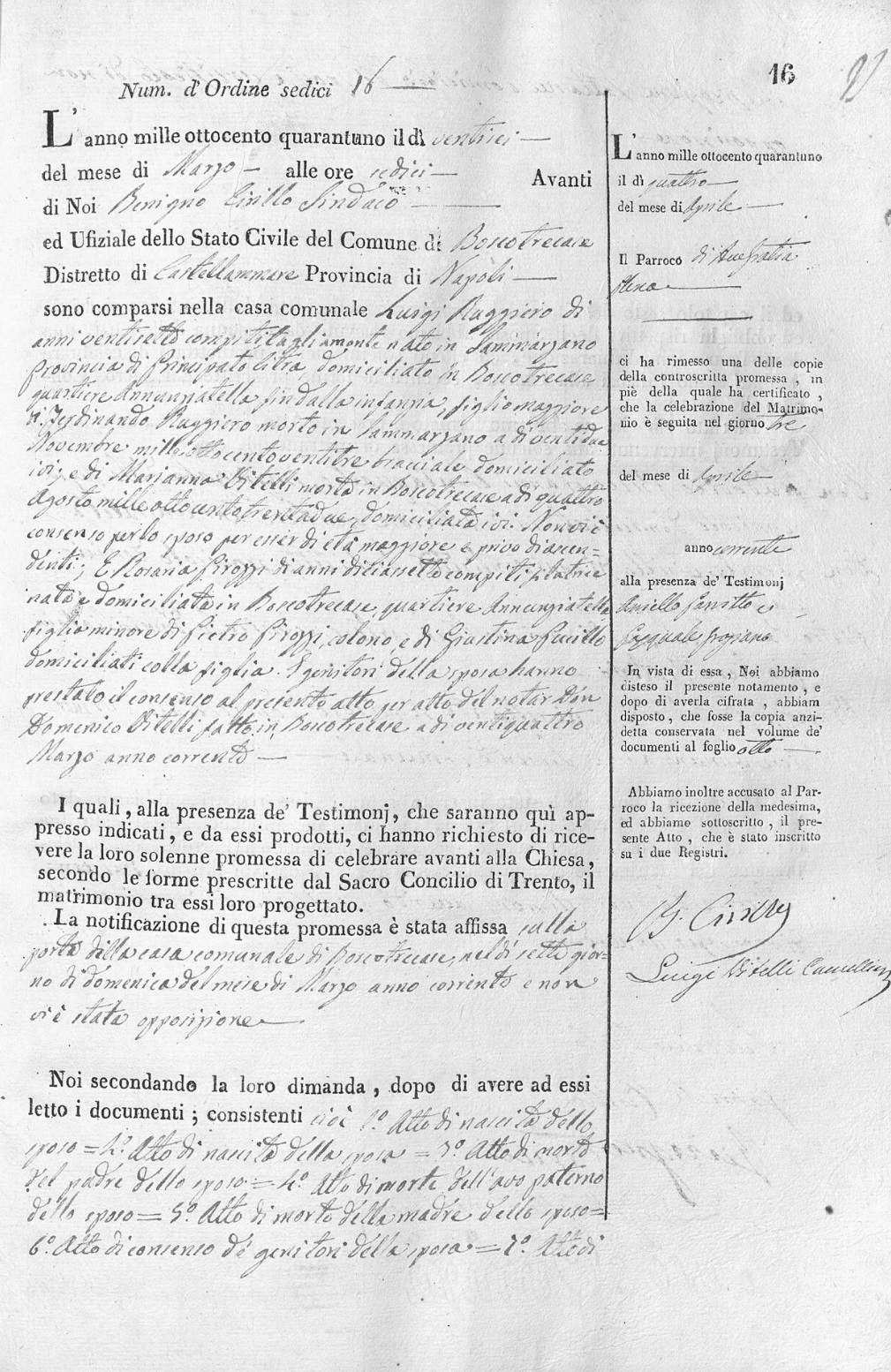 Rosaria Pirozzi were married on April 4, 1841 in Boscotrecase, Naples, Campania, Italy. He died.