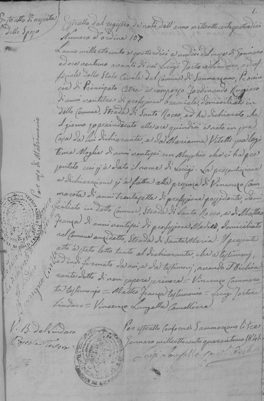 Luigi Ruggerio were married on April 4, 1841 in Boscotrecase, Naples, Campania, Italy. She died.