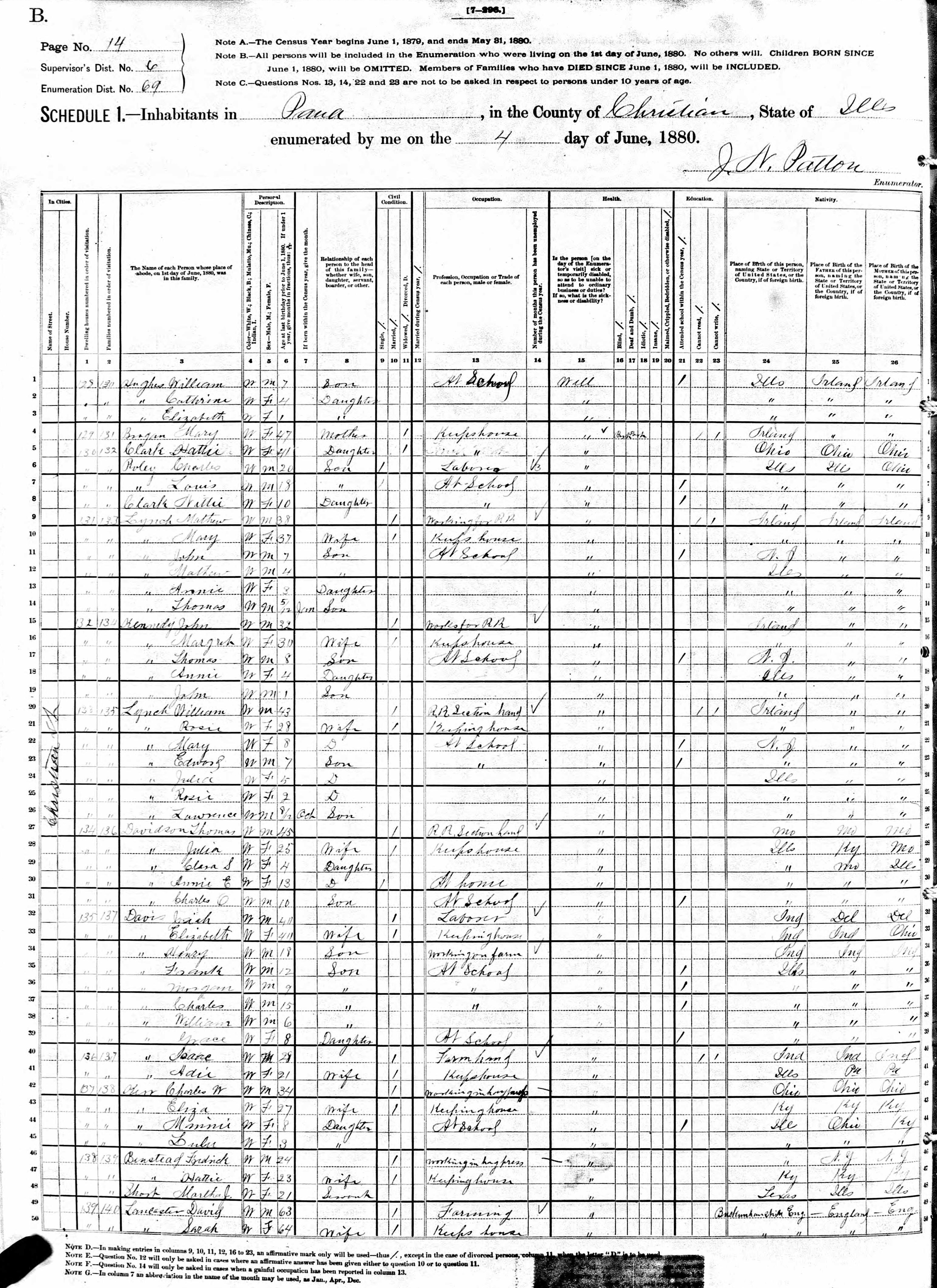 Davis Family 1880 Federal Census Illinois, Lines 32-39