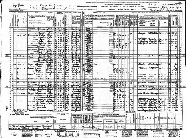 Masone Family 1940 Federal Census New York, Lines 20-22