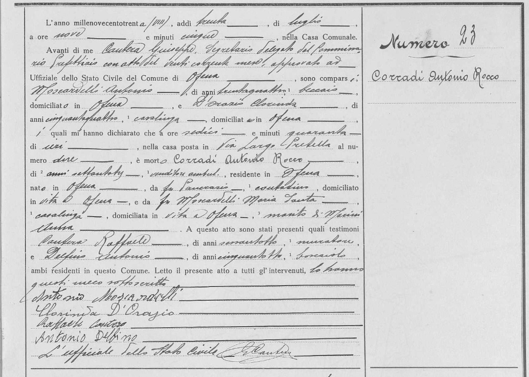 Giovanni Corrado were married on October 18, 1898 in Ofena, L'Aquila, Abruzzo, Italy. She died.