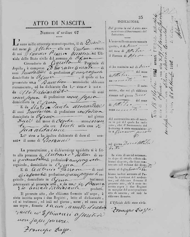 Giovanni Corrado was born on October 10, 1864 in Ofena, L'Aquila, Abruzzo, Italy. He and