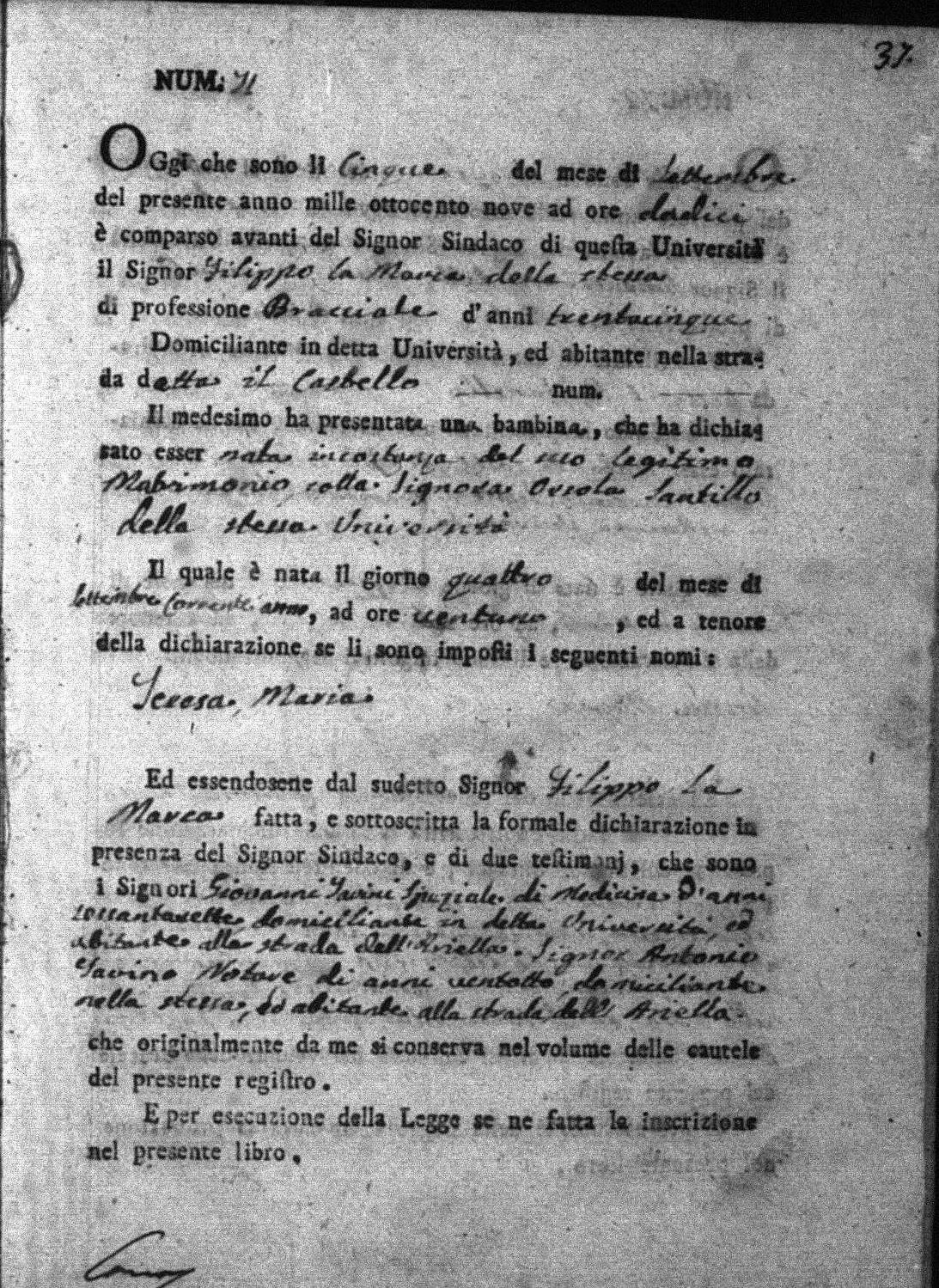 | Daughter | Teresa Maria La Marca Born: September 4, 1809 |