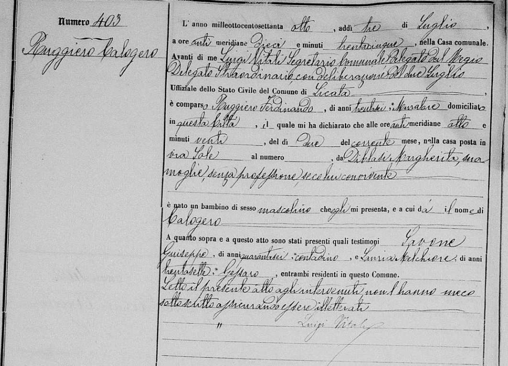 Calogero Ruggerio was born on July 2, 1878 in Licata, Agrigento, Sicily, Italy. He and