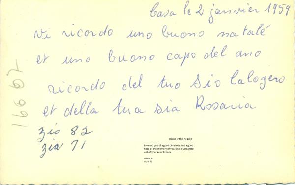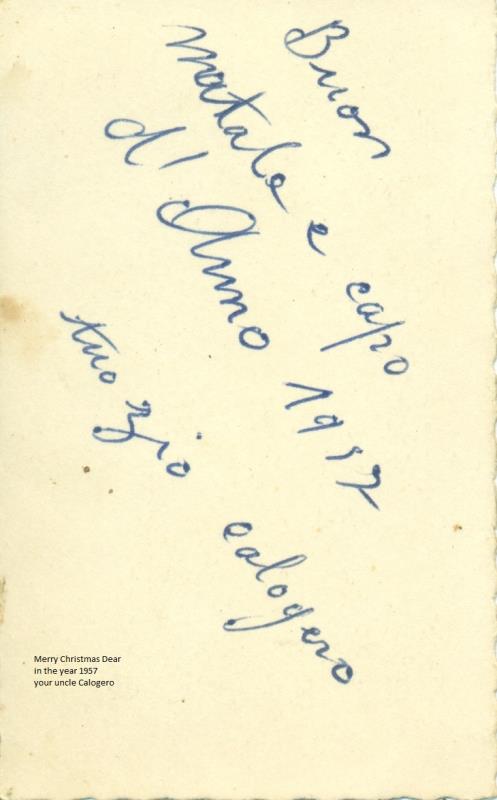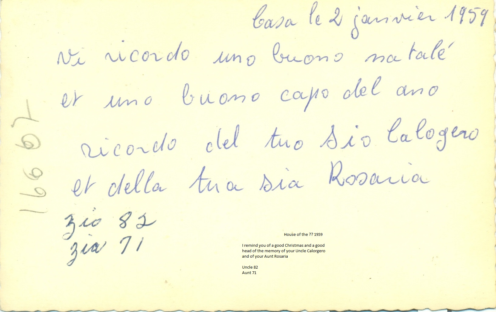 Calogero and Rosaria Ruggerio 1959 Christmas Card Back