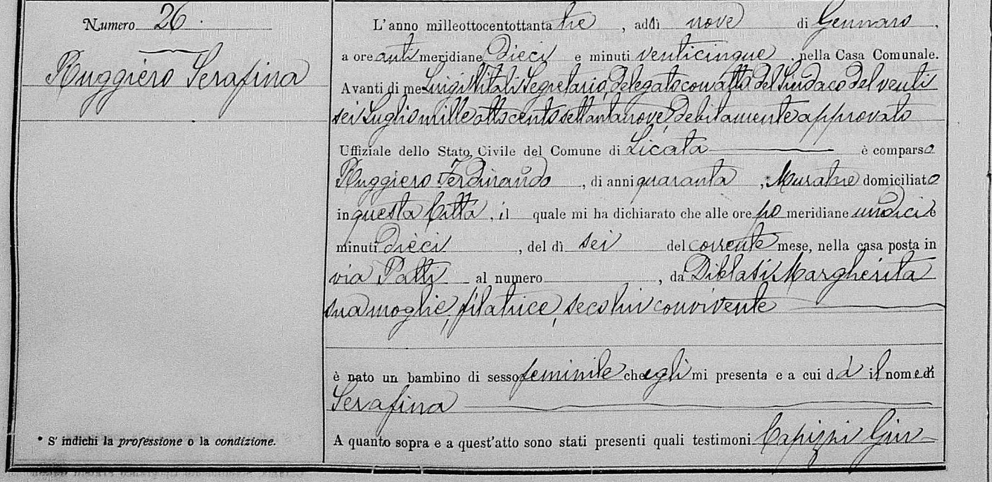 Serafina Ruggerio was born on January 6, 1883 in Licata, Agrigento, Sicily, Italy. She died.