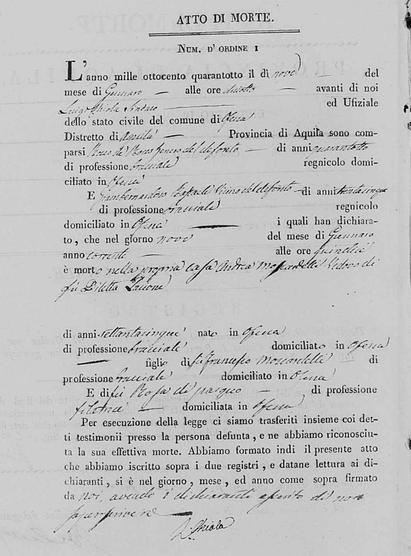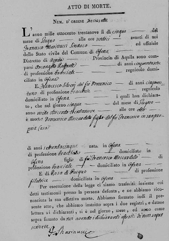 Andrea Moscardelli was born in 1773 in Ofena, L'Aquila, Abruzzo, Italy. He and