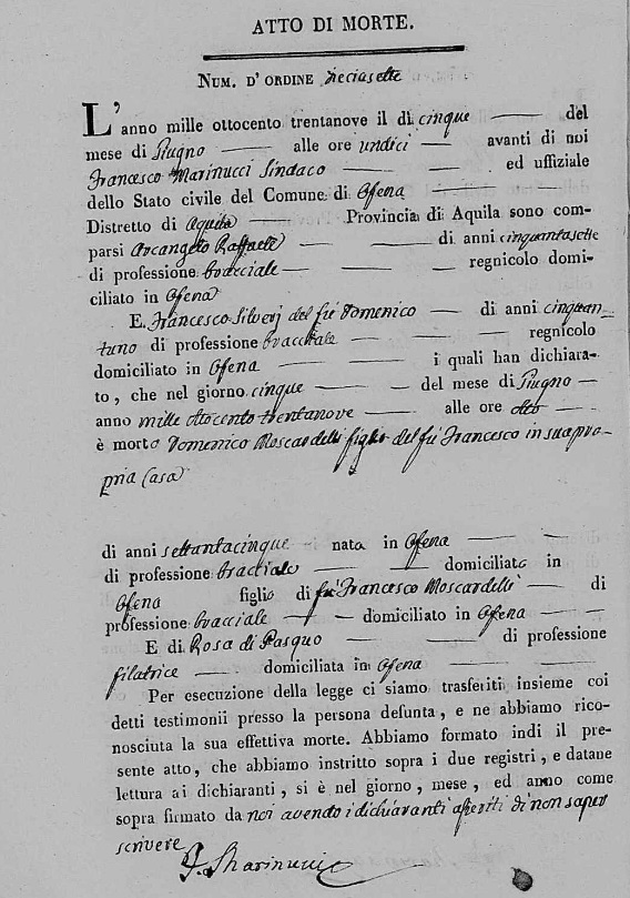 Domenico Moscardelli was born in 1764 in Ofena, L'Aquila, Abruzzo, Italy. He and