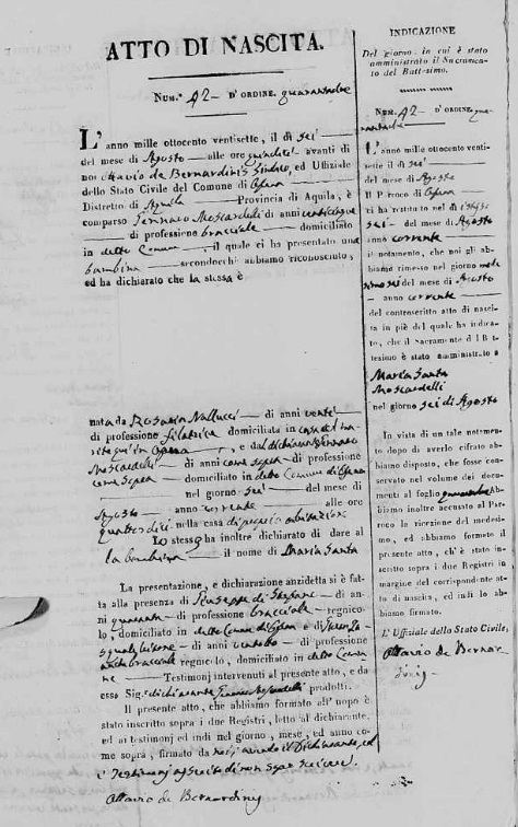 Maria Santa Moscardelli was born on August 6, 1827 in Ofena, L'Aquila, Abruzzo, Italy. She and