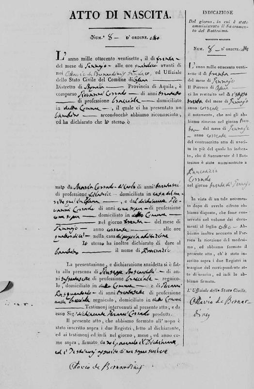 Pangrazio Corrado was born on January 30, 1827 in Ofena, L'Aquila, Abruzzo, Italy. He and