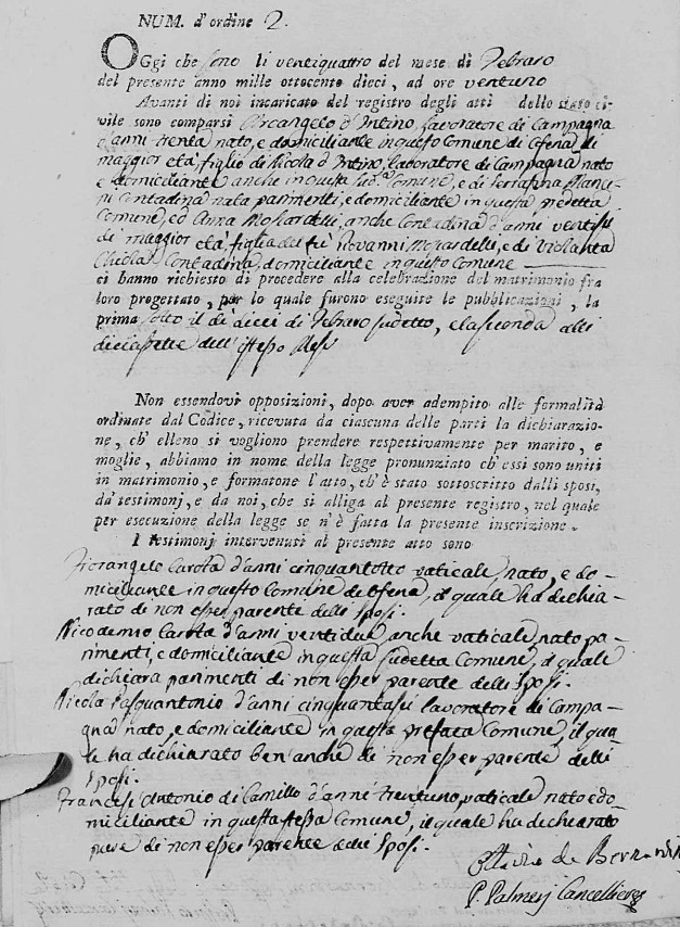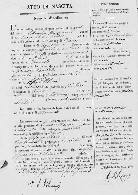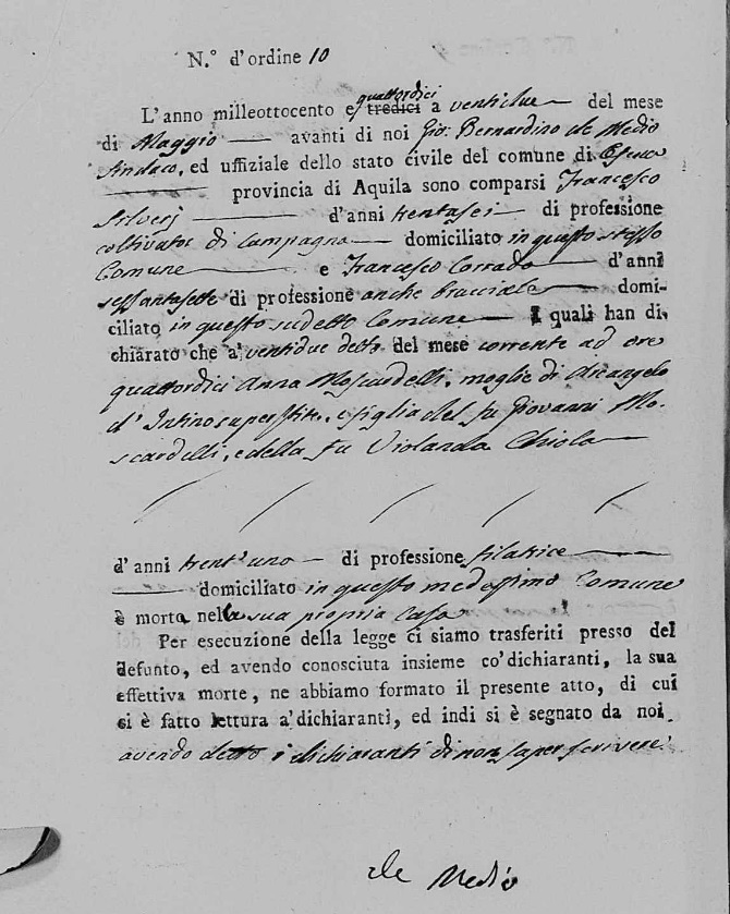 Anna Moscardelli were married on February 24, 1810 in Ofena, L'Aquila, Abruzzo, Italy. He died.