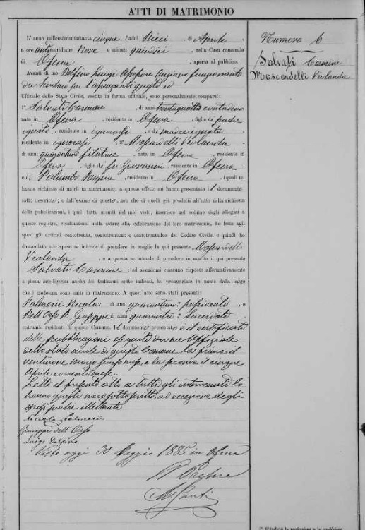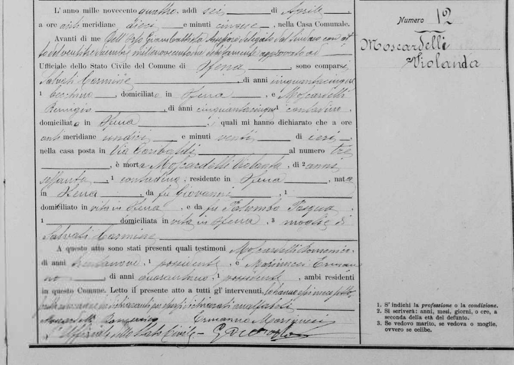 Violanda Moscardelli were married on April 10, 1885 in Ofena, L'Aquila, Abruzzo, Italy. He died.